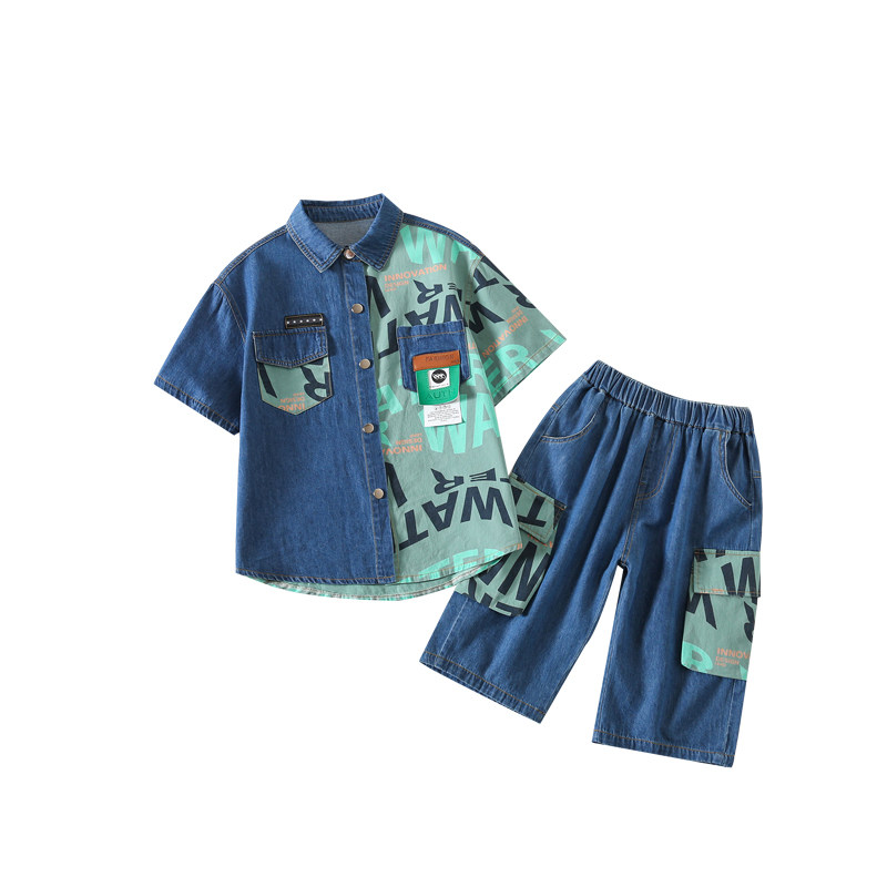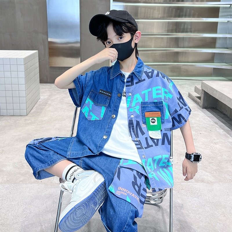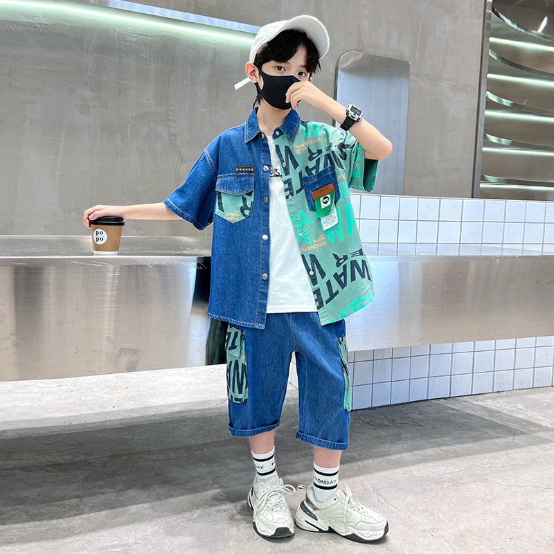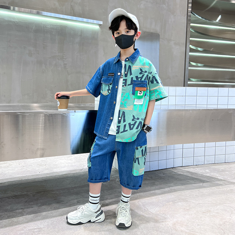 📚 男童夏装套装夏款牛仔衬衫2026新款洋气儿童夏季短袖帅气男孩衣服