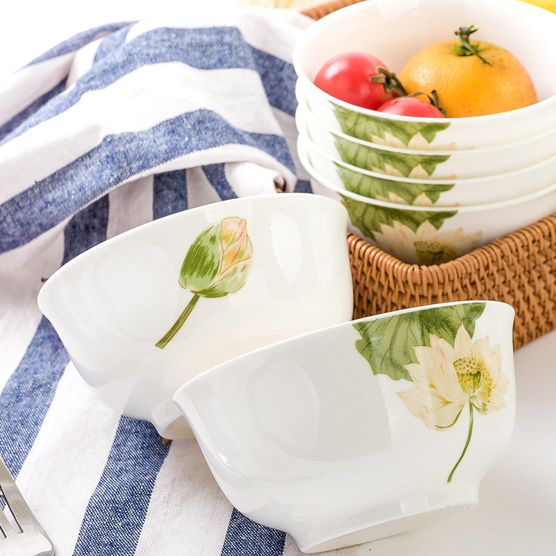 📚 家用唐山骨瓷餐具4.5英寸中式金钟碗陶瓷饭碗4.5寸米饭碗微波小碗