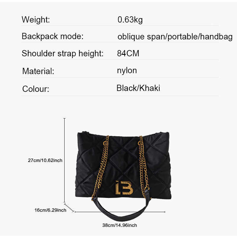 📚 Bimba y lola新款茶金链条包 时尚尼龙单肩托特包女 大容量购物袋
