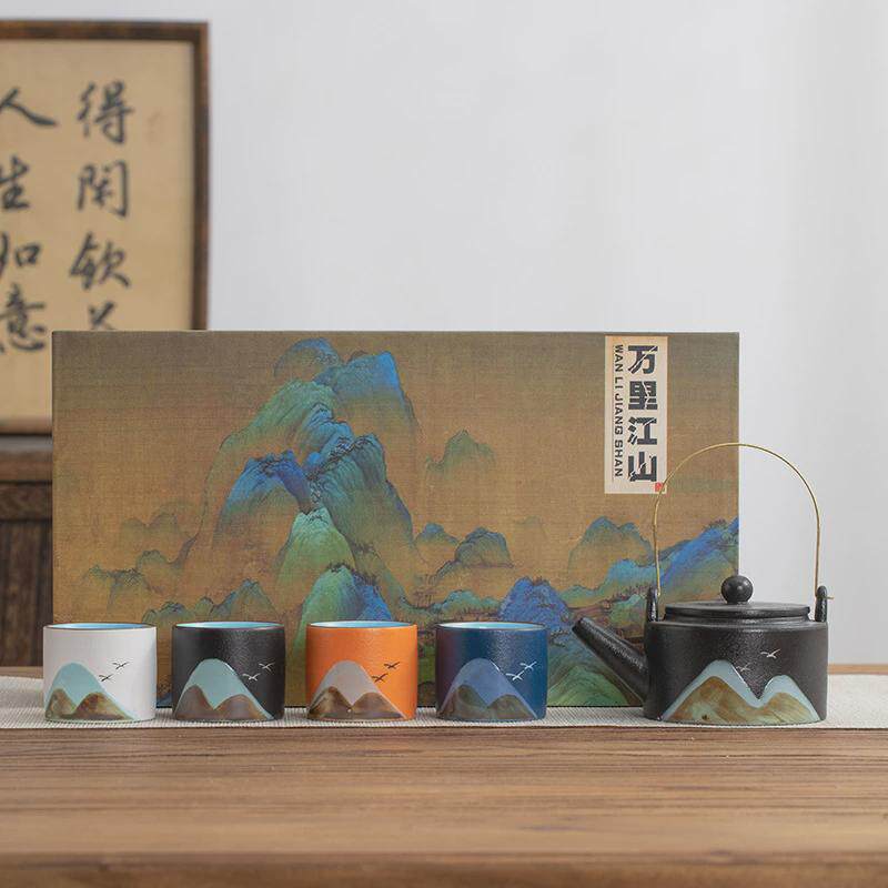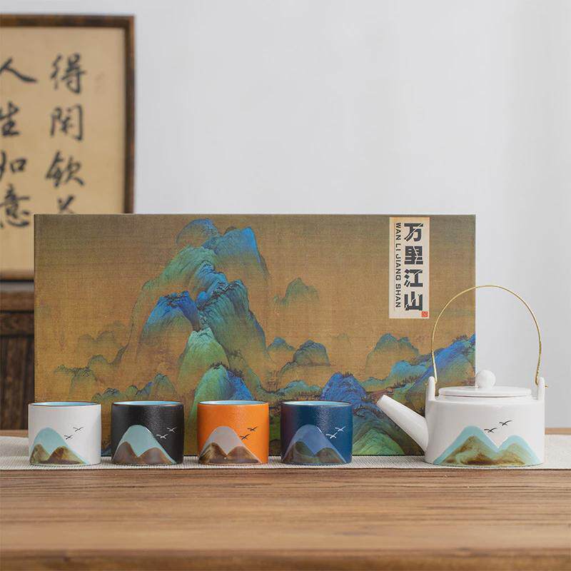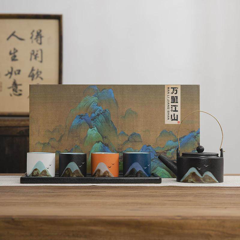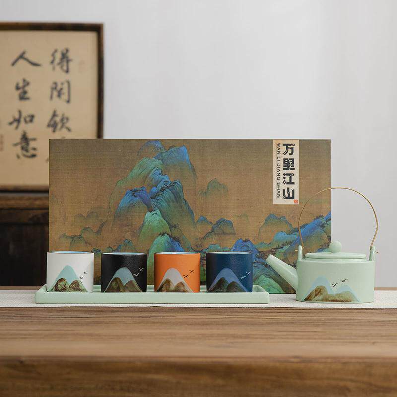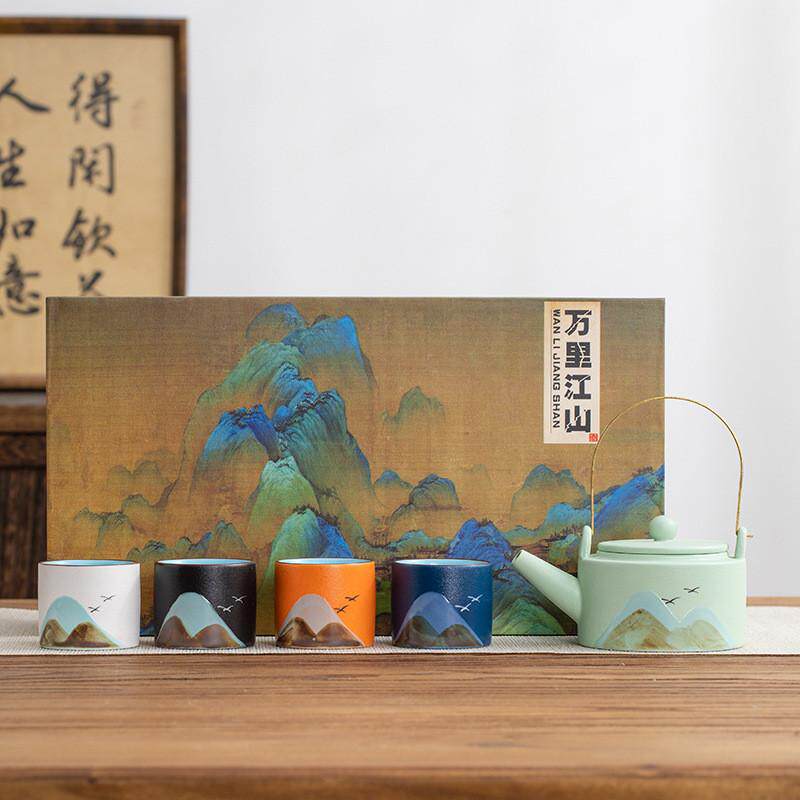 📚 远山文创印logo国潮一壶四杯品茶杯公司商务活动礼品功夫茶具套装