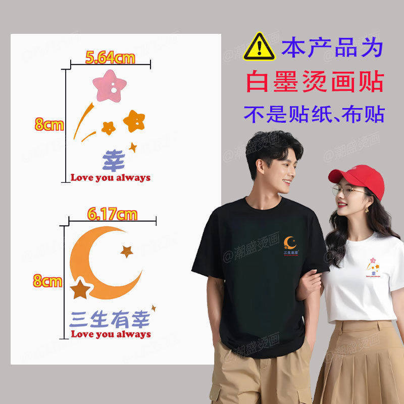 📚 烫画布贴2025新款衣服印花DIY国潮图案情侣短袖T恤胸标热转印贴纸
