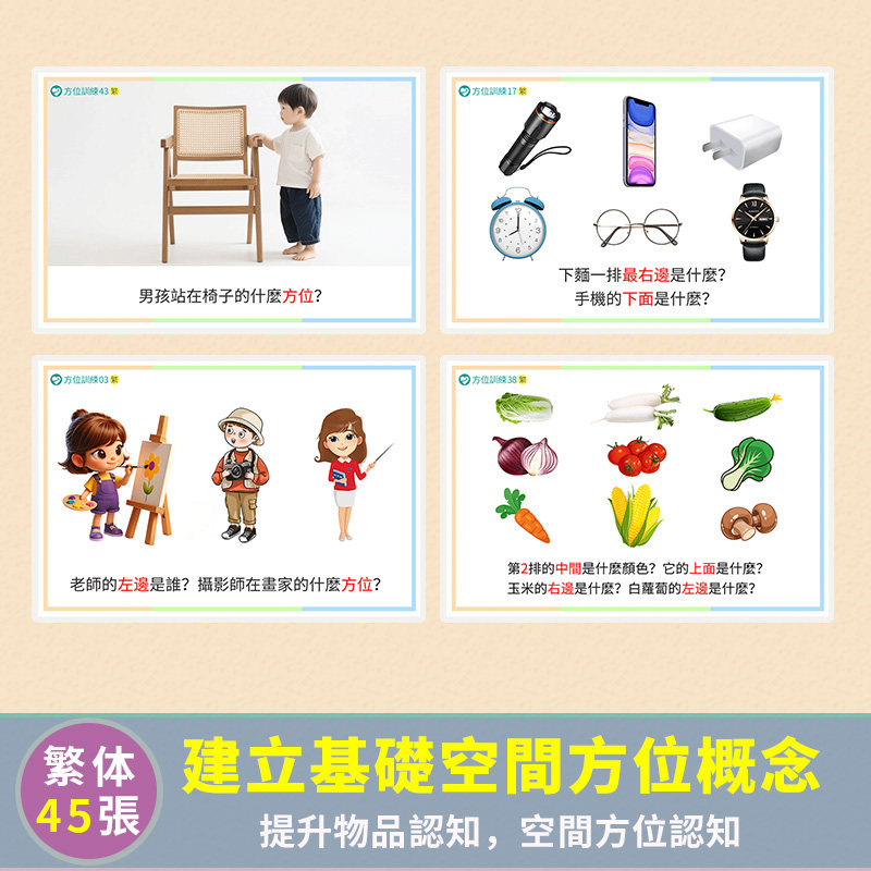 📚 繁体方位認知卡片空間泛化訓練看圖回答問題幼兒自閉症兒童教具