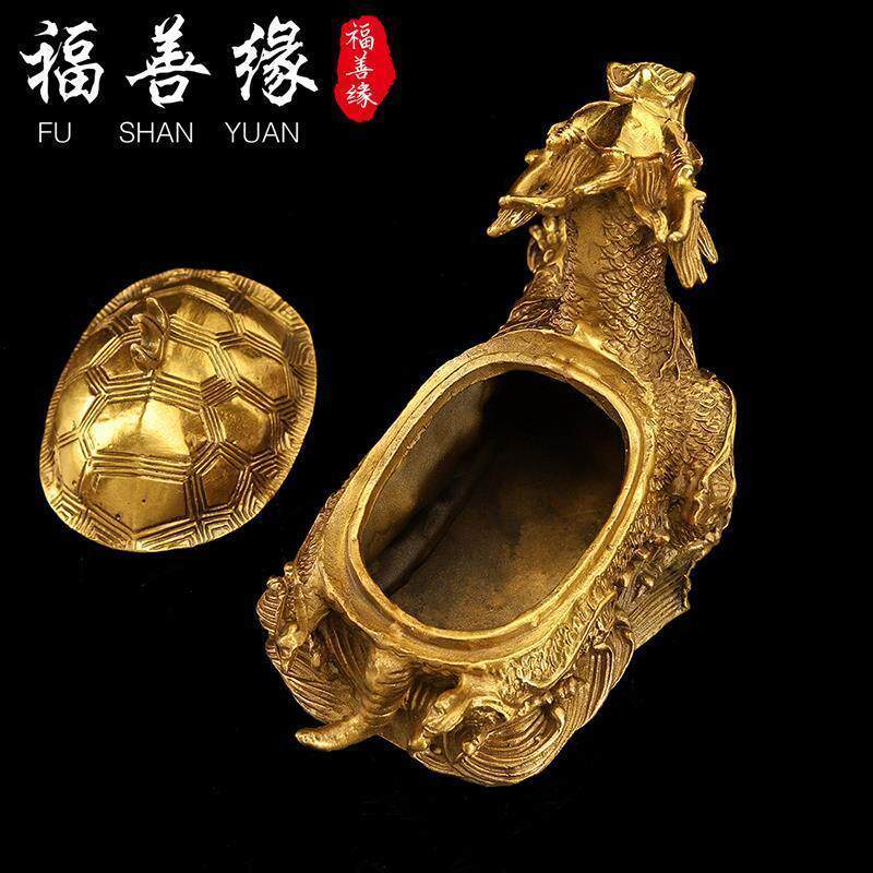 📚 铜开 盖龙龟摆件纯铜龙头龟霸下赑屃神兽客厅桌面工艺礼品摆饰大