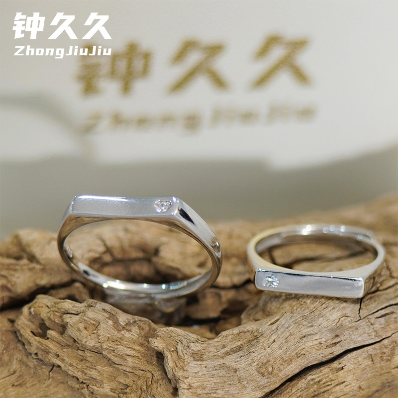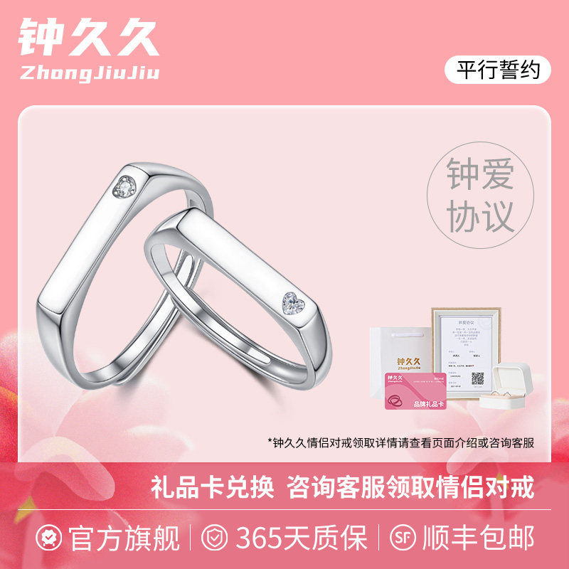 📚 钟久久情侣对戒平行誓约纯银戒指女情人节新年礼物送定制钟爱协议