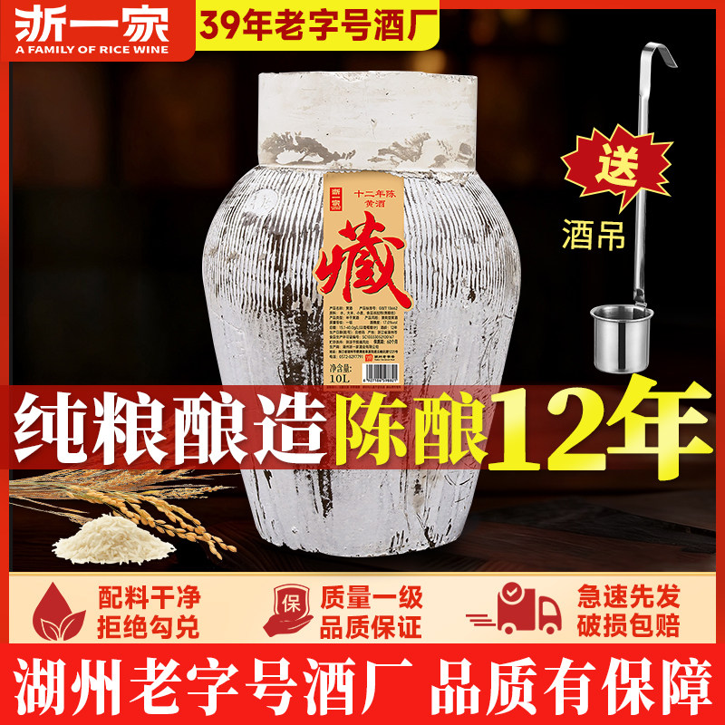 📚 浙一家坛装花雕黄酒12年陈老酒加饭酒做菜料酒浙江黄酒糯米酒10L