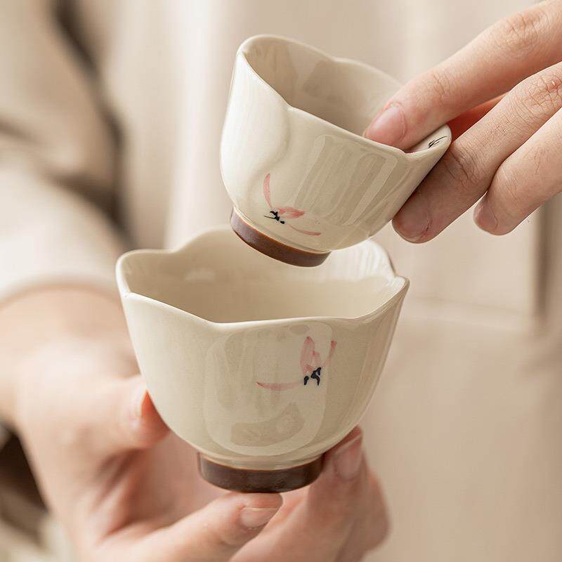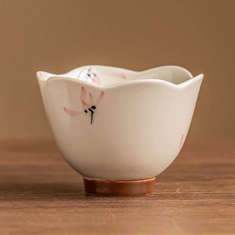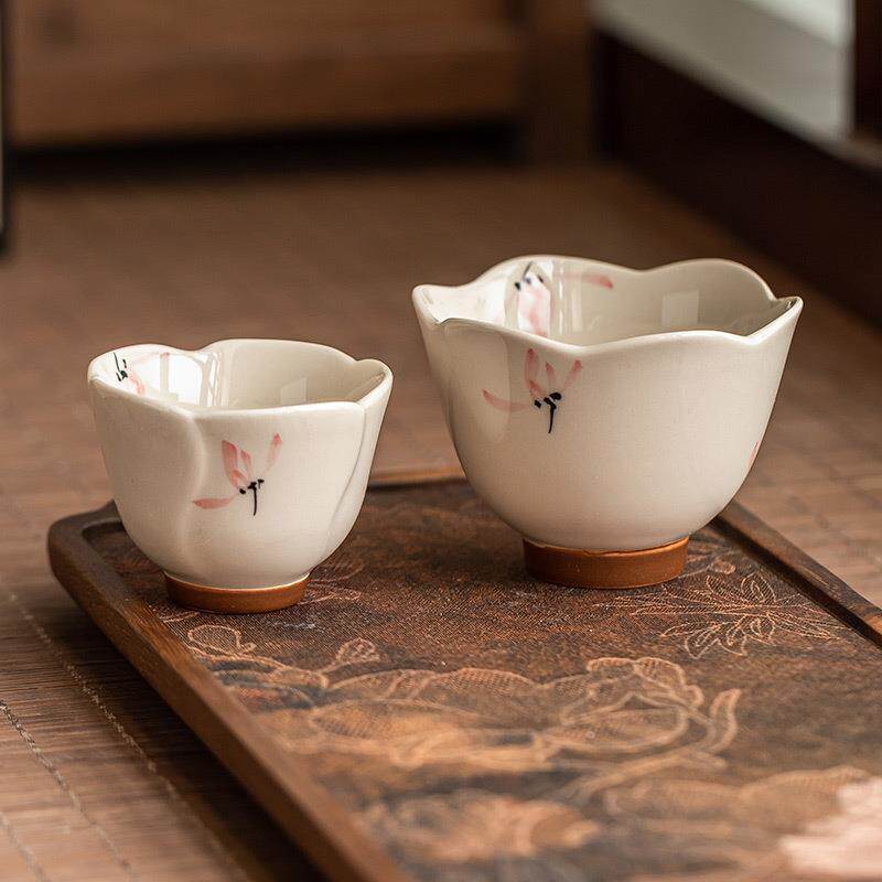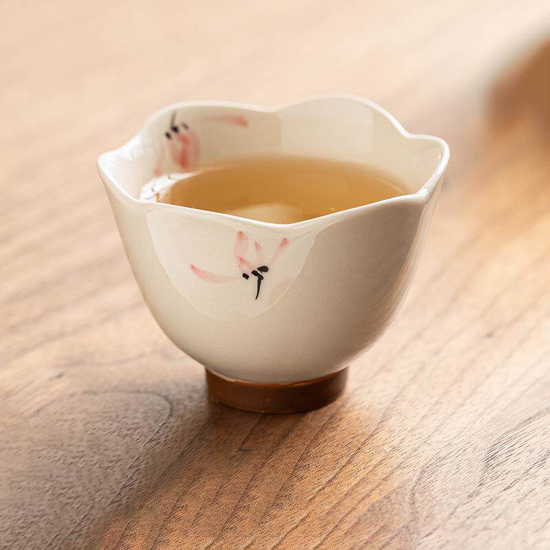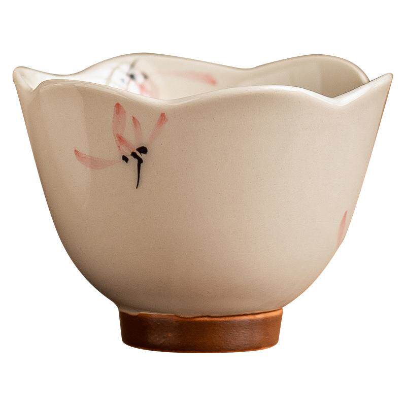 📚 手绘粉色兰花花口杯陶瓷功夫茶品茗杯茶杯主人杯女士茶具茶盏