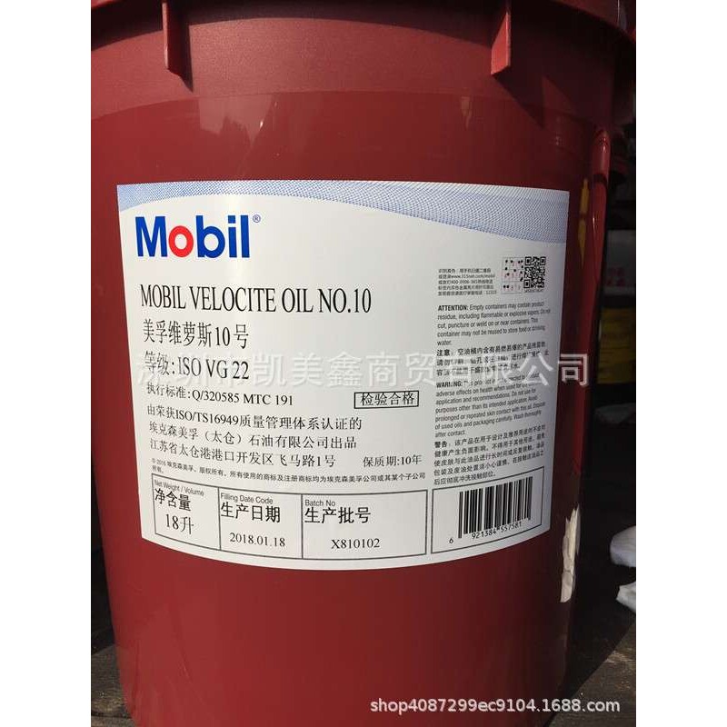 📚 美.孚维萝斯6号锭子油VG10号 Velocite NO.6锭子油18L 208L