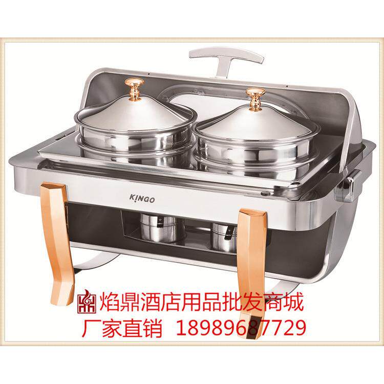 📚 KINGO南洋精工牌可调温可视镀金全钢圆形自助餐炉/布菲炉S6701