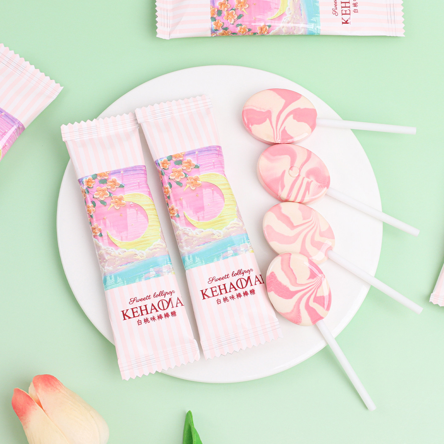 📚 可好麦白桃味棒棒糖果高颜值水果味结婚喜糖伴手礼办公室休闲零食