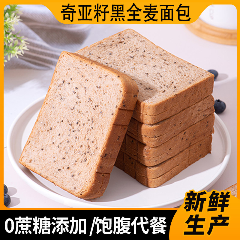 📚 奇亚籽黑全麦面包早餐减整箱无0切片吐司糖代餐饱腹脂零早餐食品