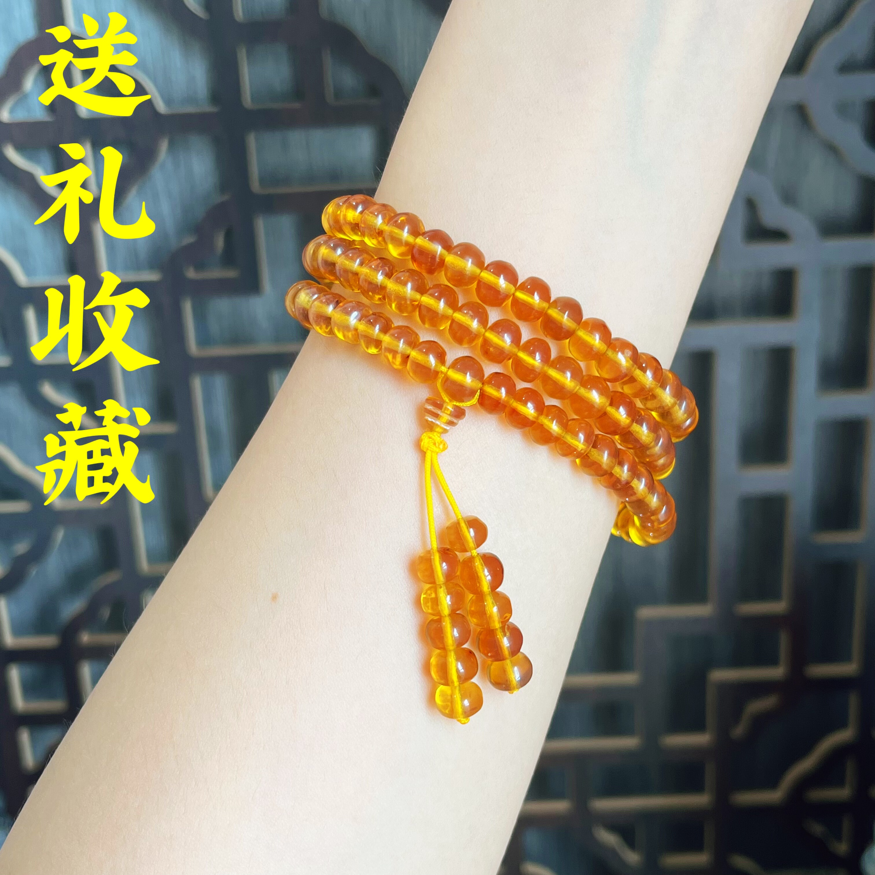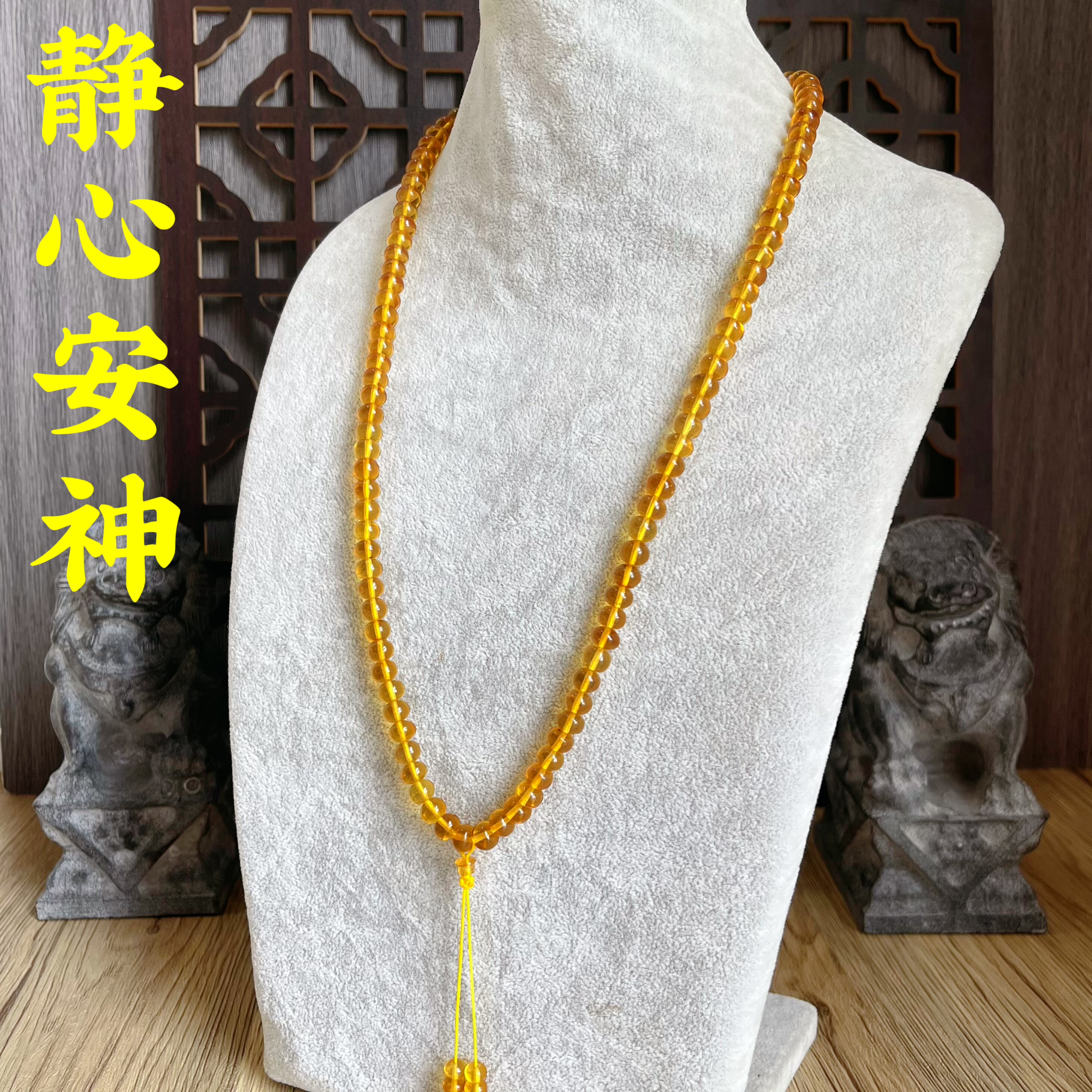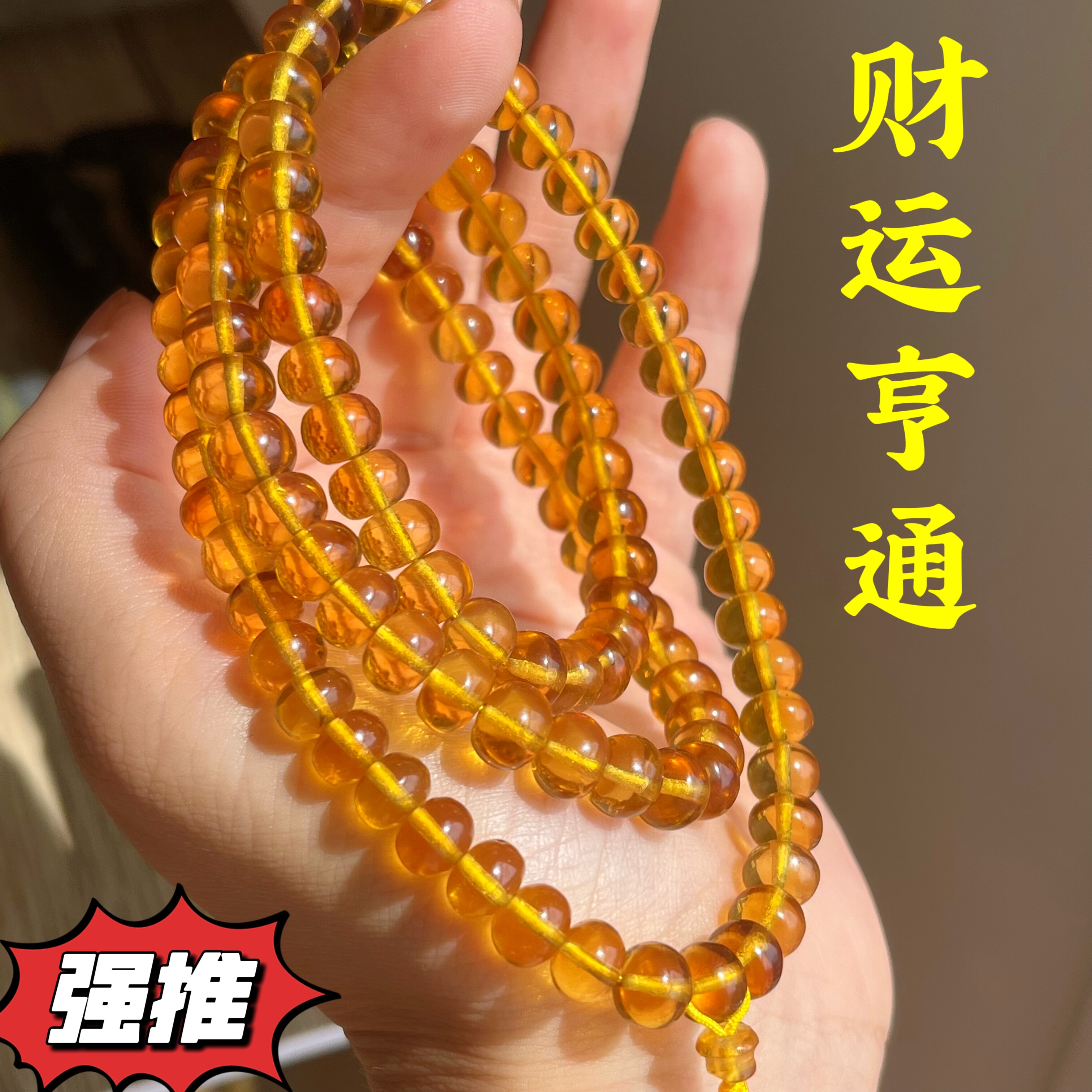 📚 带证书天然原矿抚顺琥珀金珀豆油黄西露天矿老料安神助眠佛珠项链