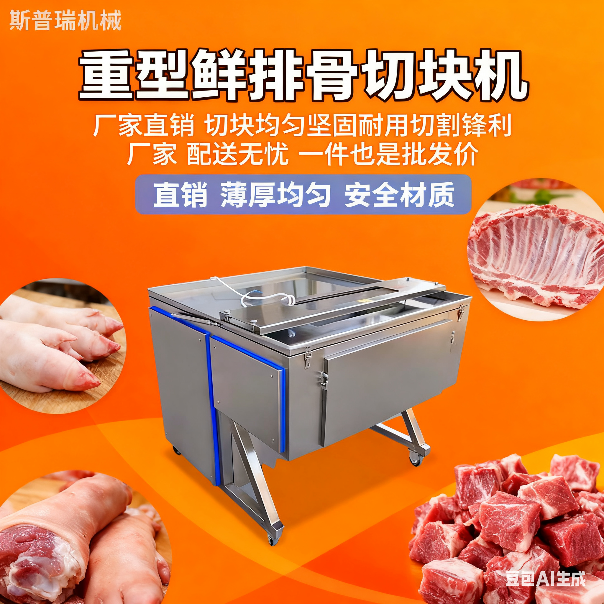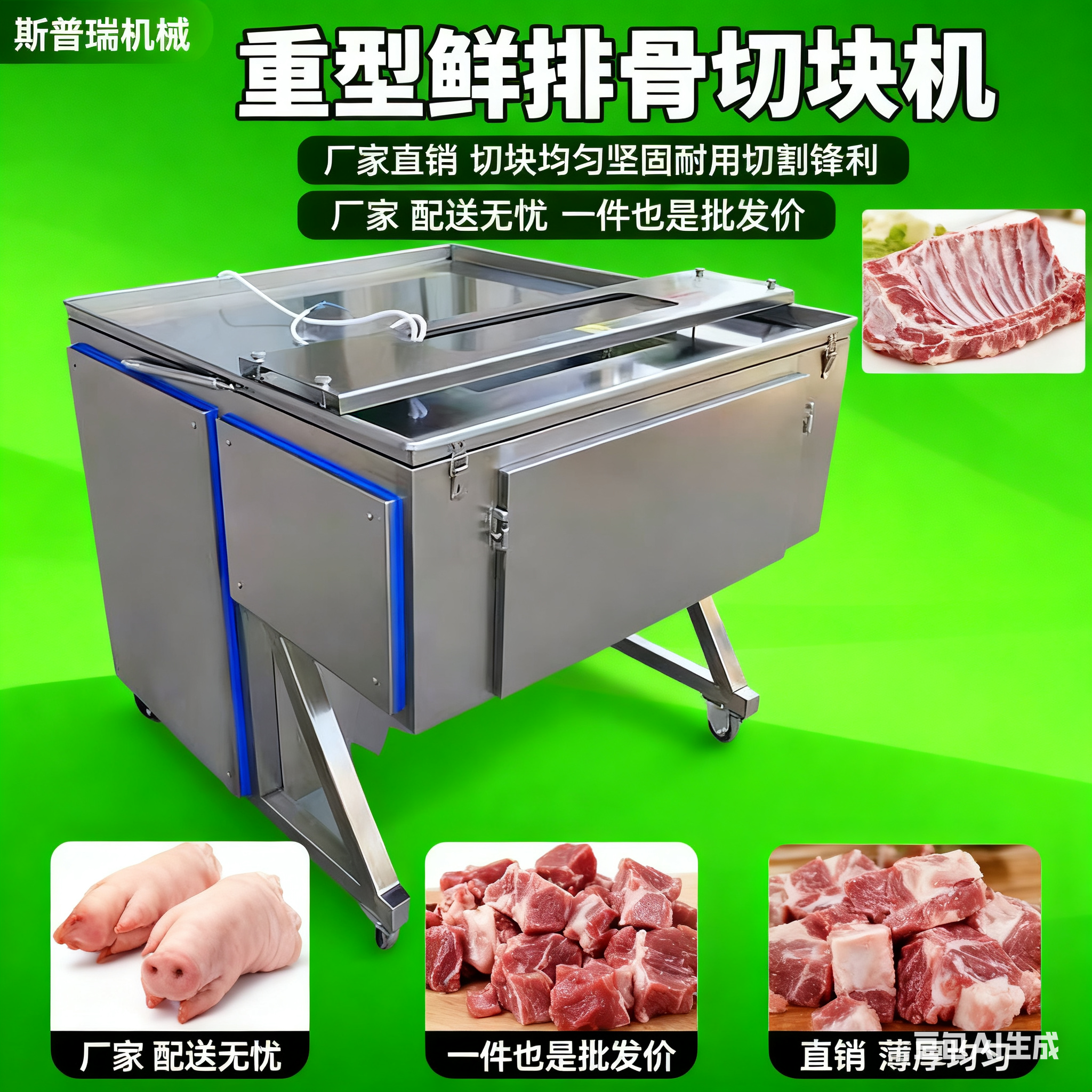 📚 商用重型鲜排骨切块机全自动龙骨猪蹄鹅羊骨切块机带皮羊排切块机