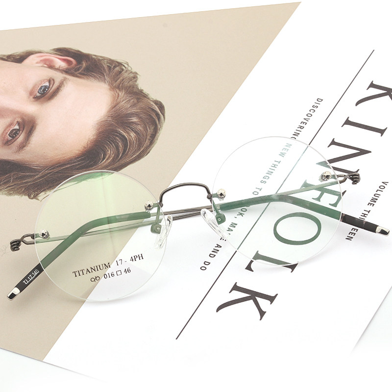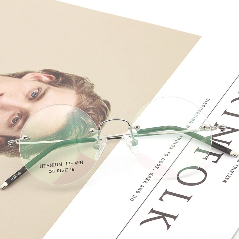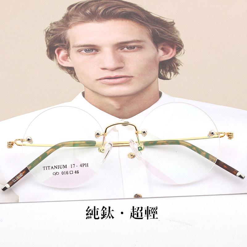 📚 无框乔布斯同款纯钛无框圆圆眼镜近视平光防蓝光辐射超轻切边眼镜