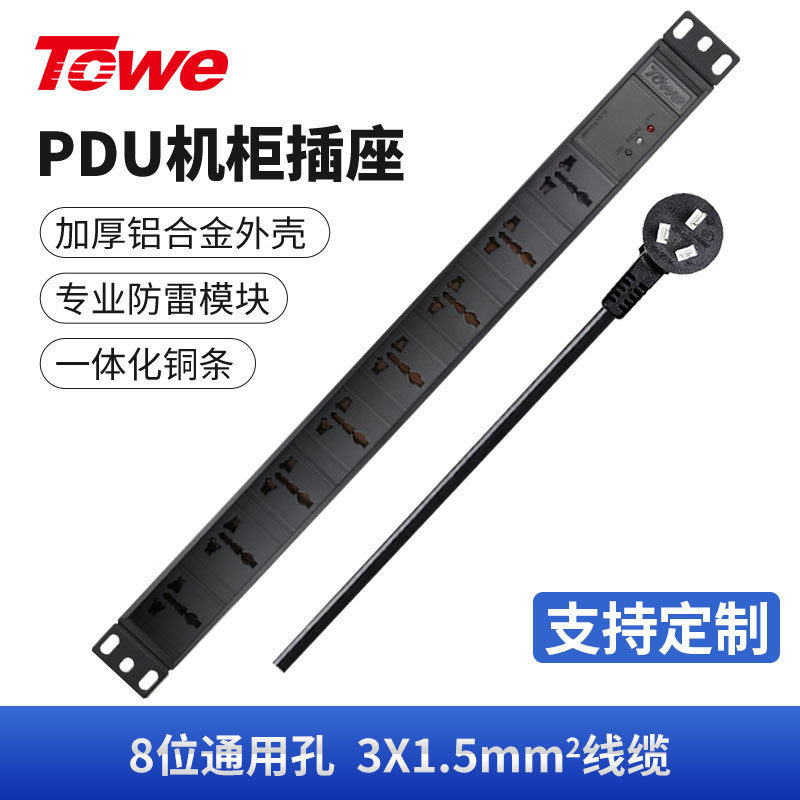 📚 TOWE防雷pdu机柜插座通用孔防雷pdu电源插接线板排插8位10A插排板