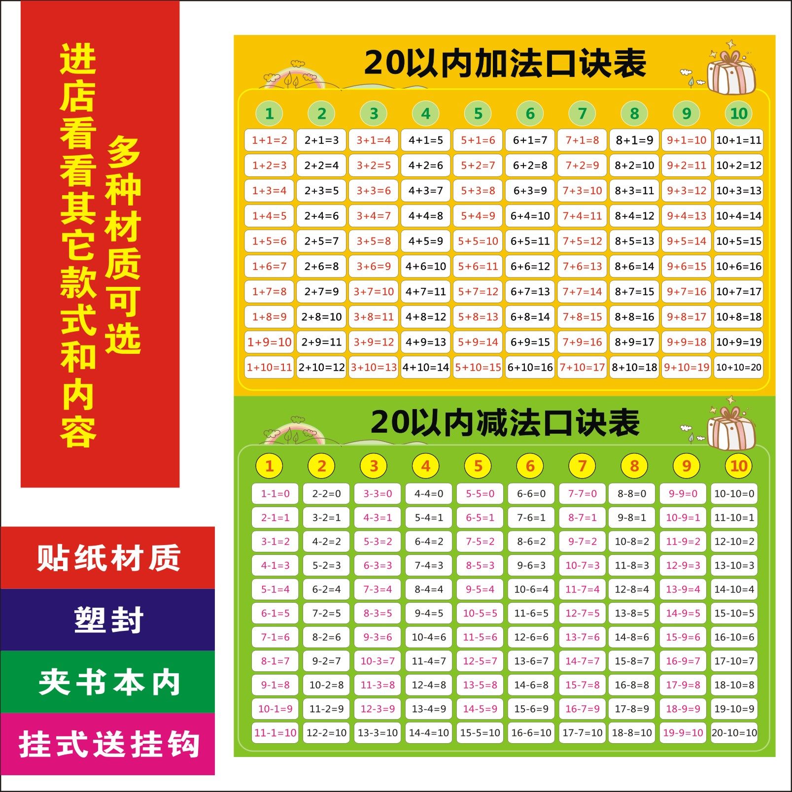 08¥ HU006 PEVfURkGa8y¥ https://m.tb.cn/h.7stDfEZ 儿童10以内数十以内分解与组成数学加减法口诀表墙贴分成挂图 --------------------- 【原售价】3元 【现售价】3元。