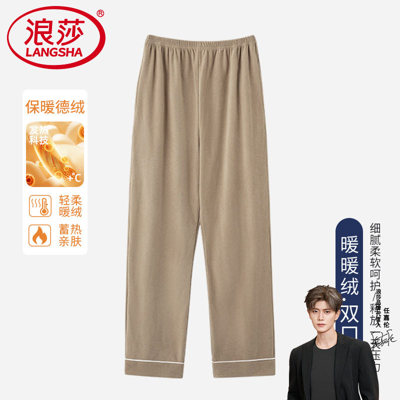 📚 浪莎加绒裤子男款秋冬德绒大码居家睡裤宽松直筒休闲长裤家居单裤