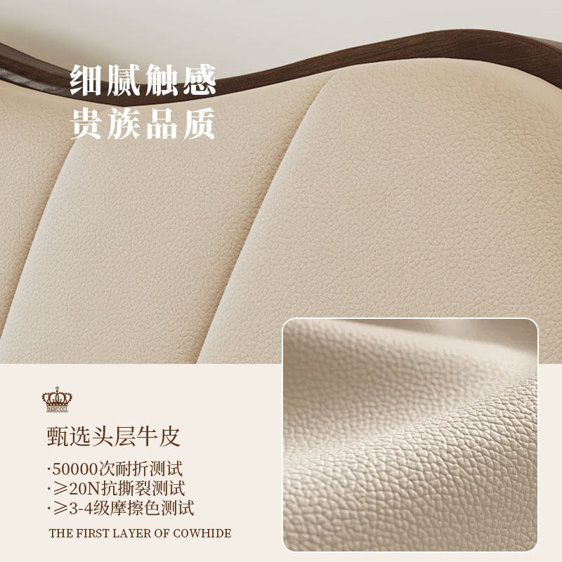 📚 慕思官方旗舰店实木床头层牛皮床主卧复古风皮艺床1米8双人床卧室