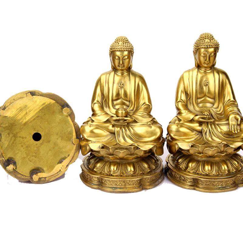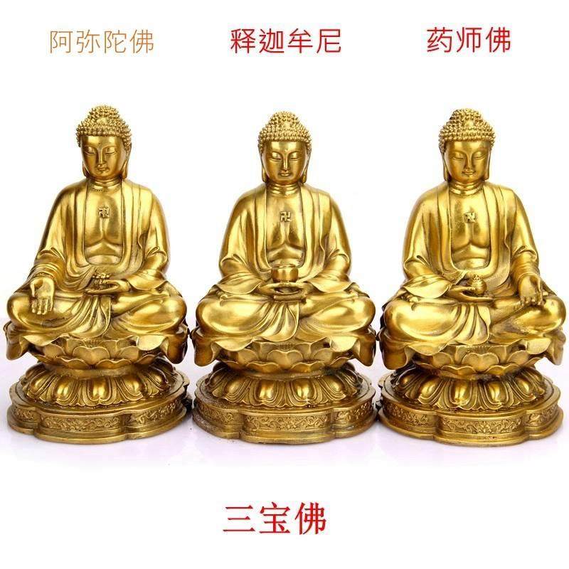 📚 极速l纯铜三宝佛释n迦牟佛阿弥佛陀佛佛药师华严三圣客厅像摆尼件