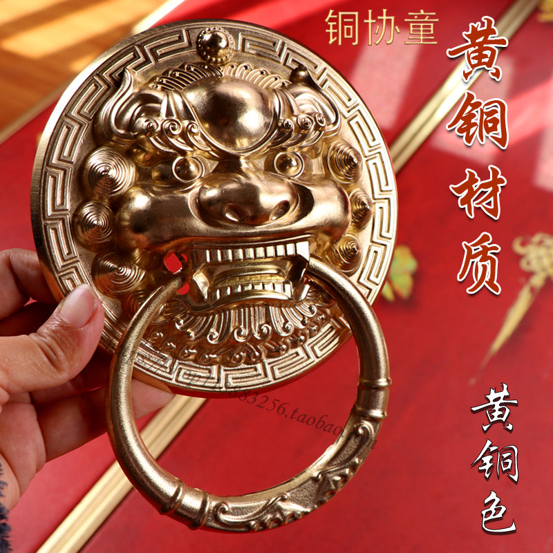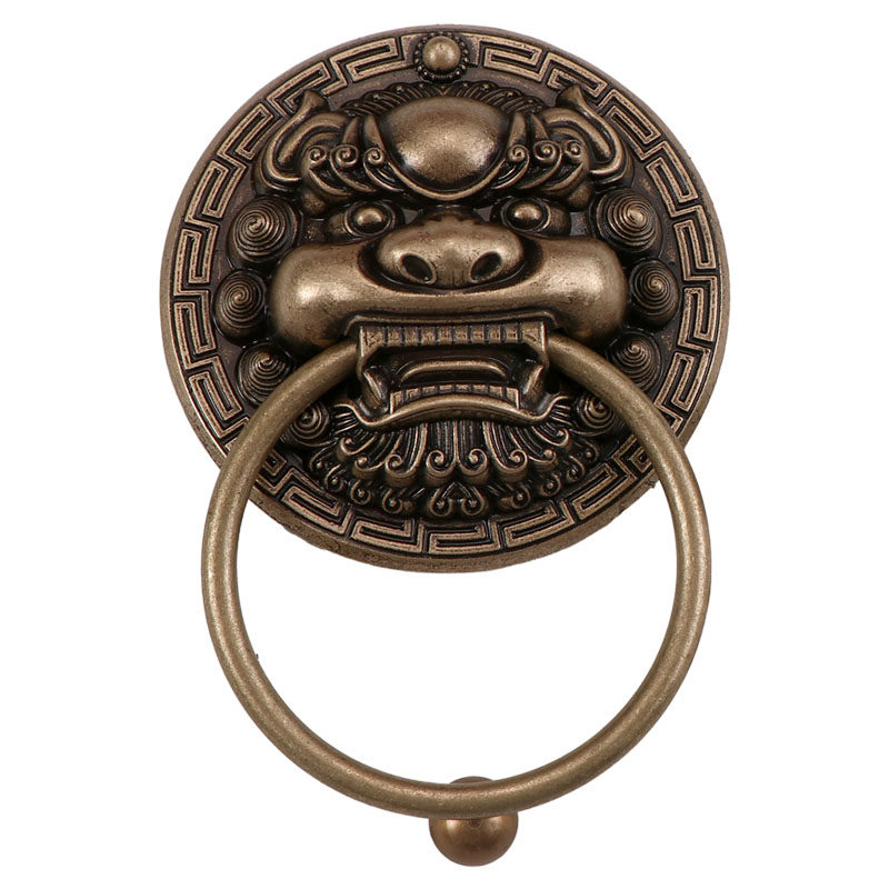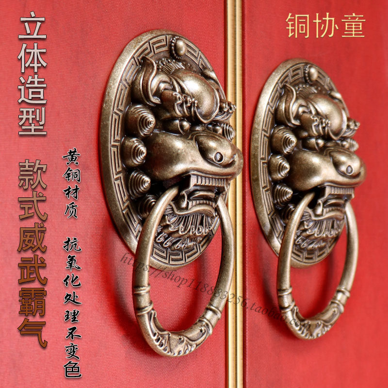 📚 中式仿古纯铜兽头门环狮子头虎头大门拉手麒麟兽首复古木门铜拉环