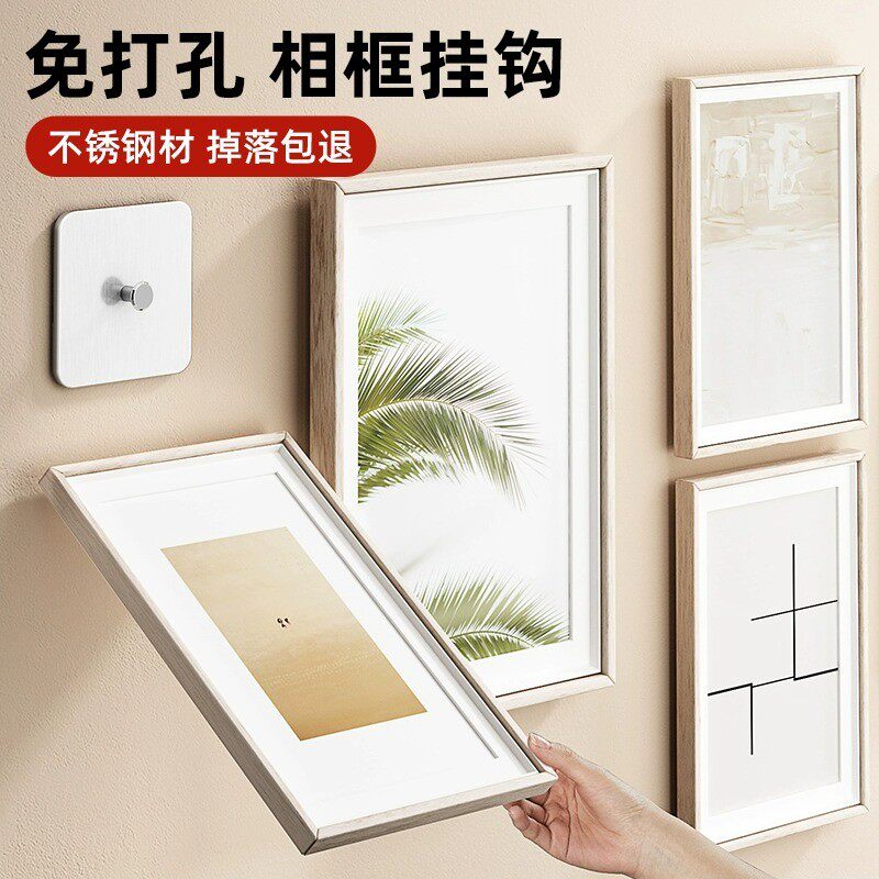 📚 不锈钢挂画神器免打孔家用挂钩婚纱照专用相框挂墙上固定器无痕钉