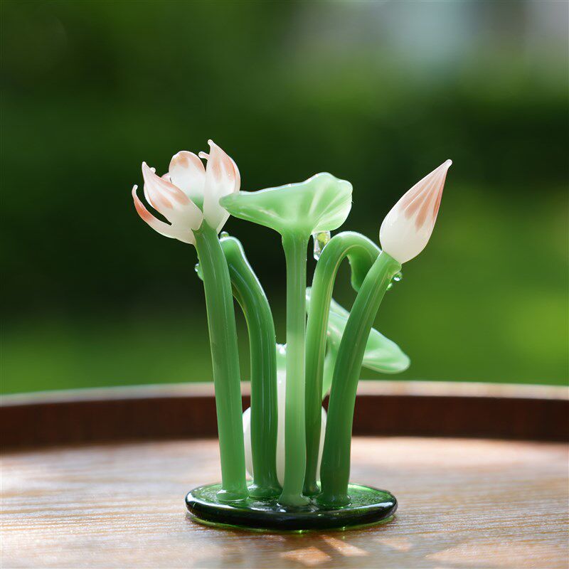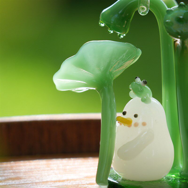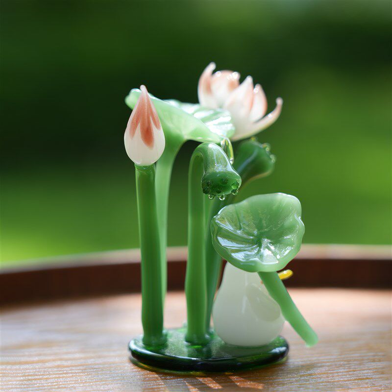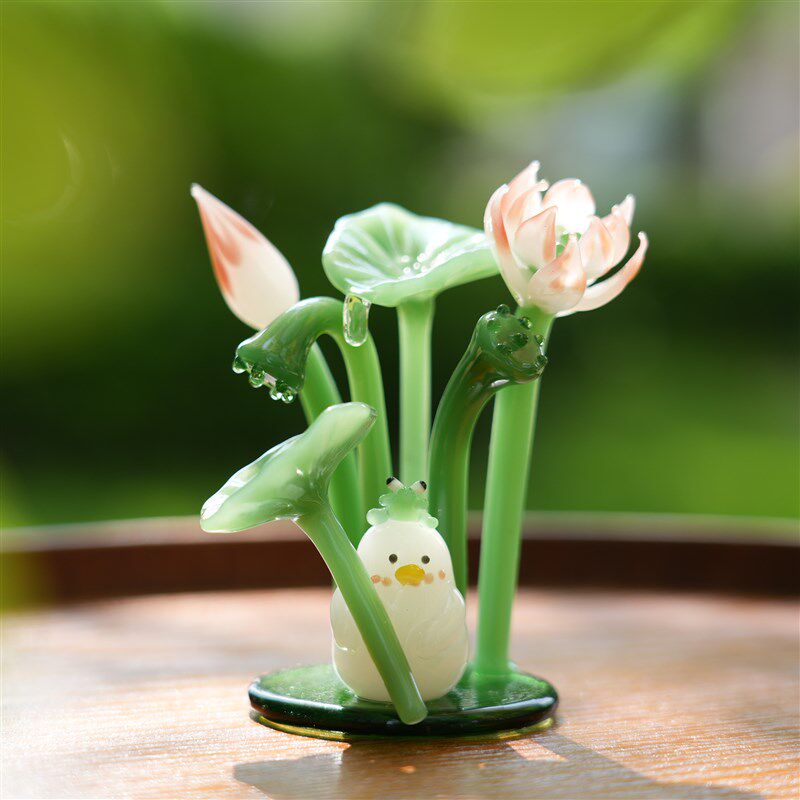 📚 淄博琉璃手工艺品夏日荷花鸭桌面摆件仿真莲花装饰品治愈生日礼物