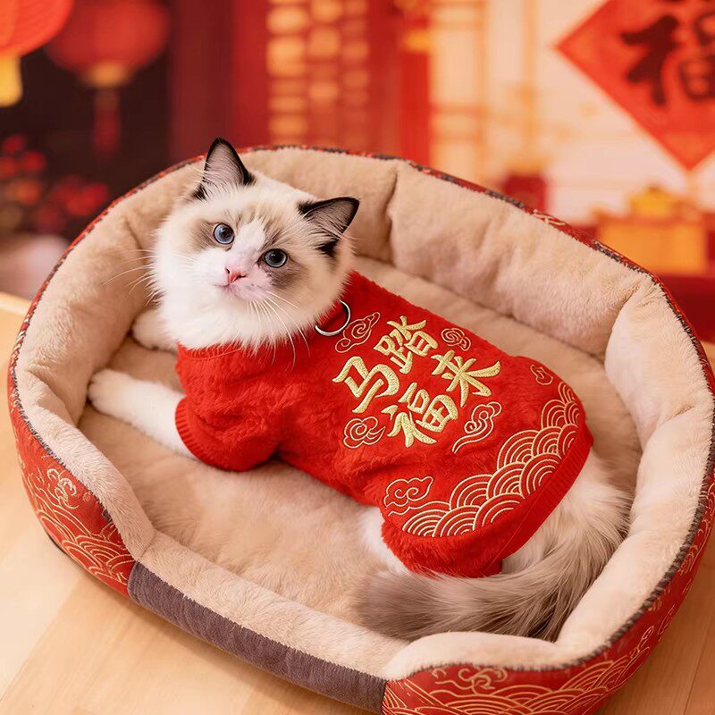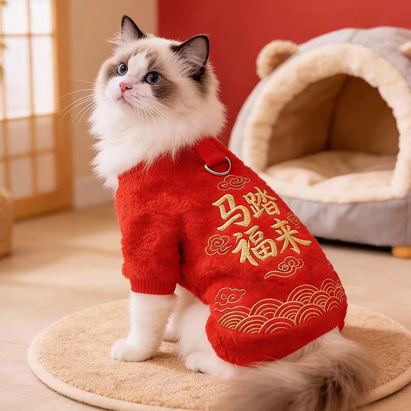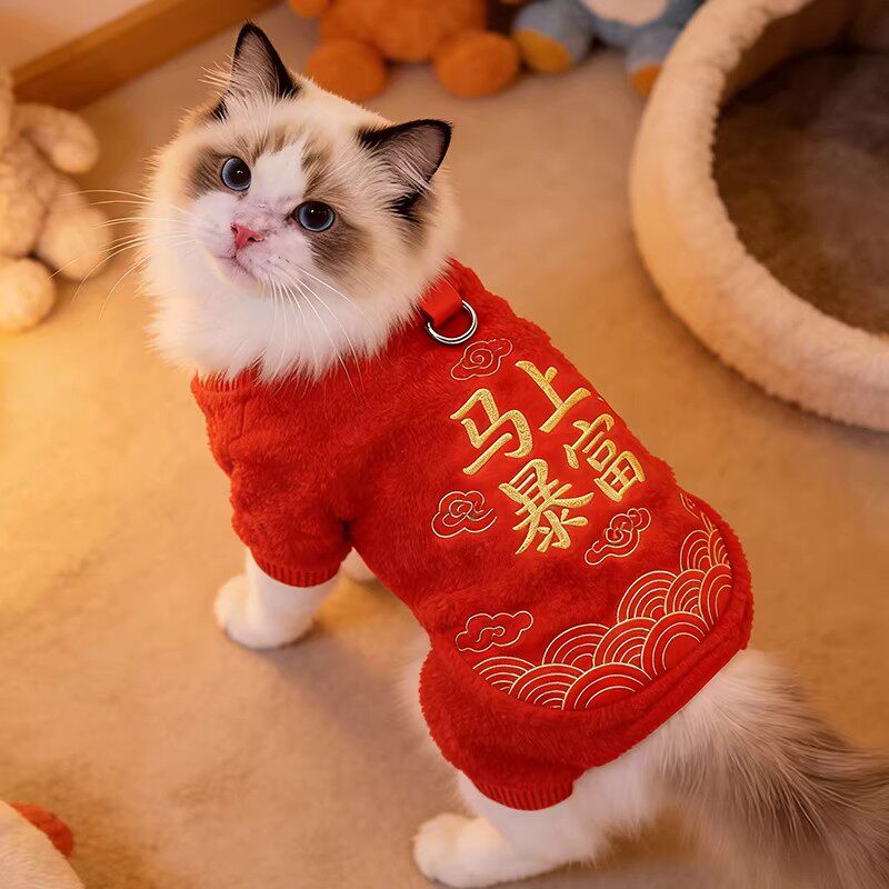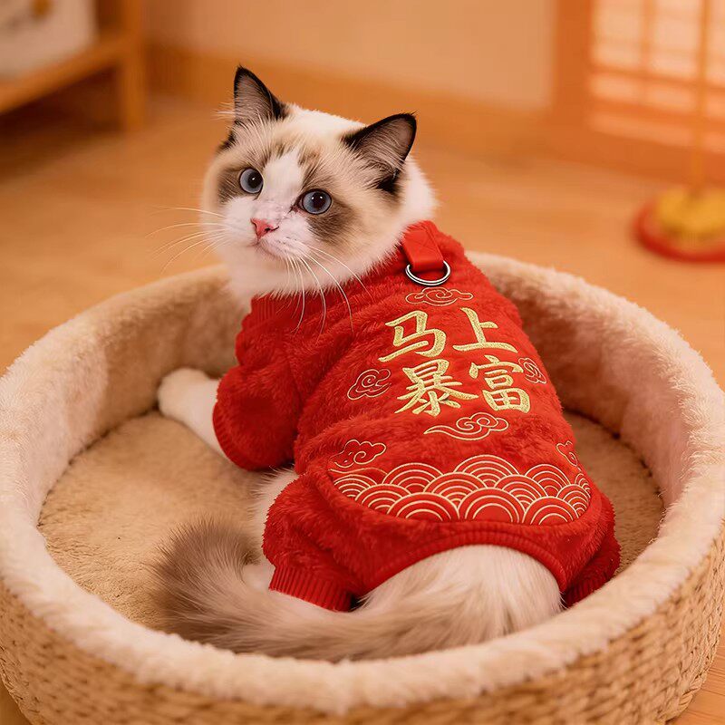 📚 2026新年猫咪衣服冬装防掉毛德文猫圣诞舞狮小猫幼猫猫保暖四脚衣