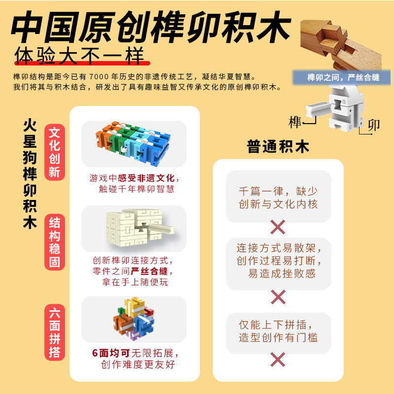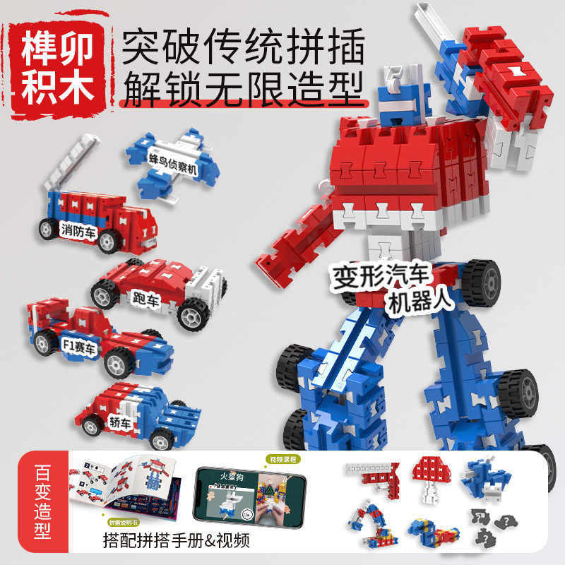 📚 火星狗榫卯积木汽车益智拼装玩具大颗粒男孩儿童节礼物