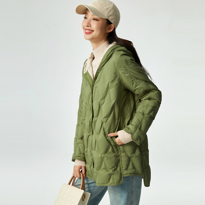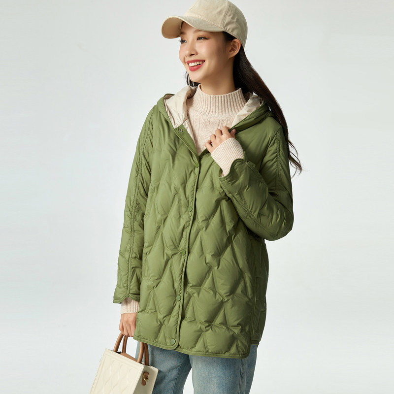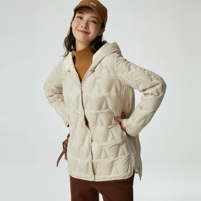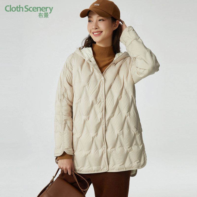 📚 布景羽绒服女冬季新品简约菱格设计感连帽白鸭绒保暖宽松外套5567