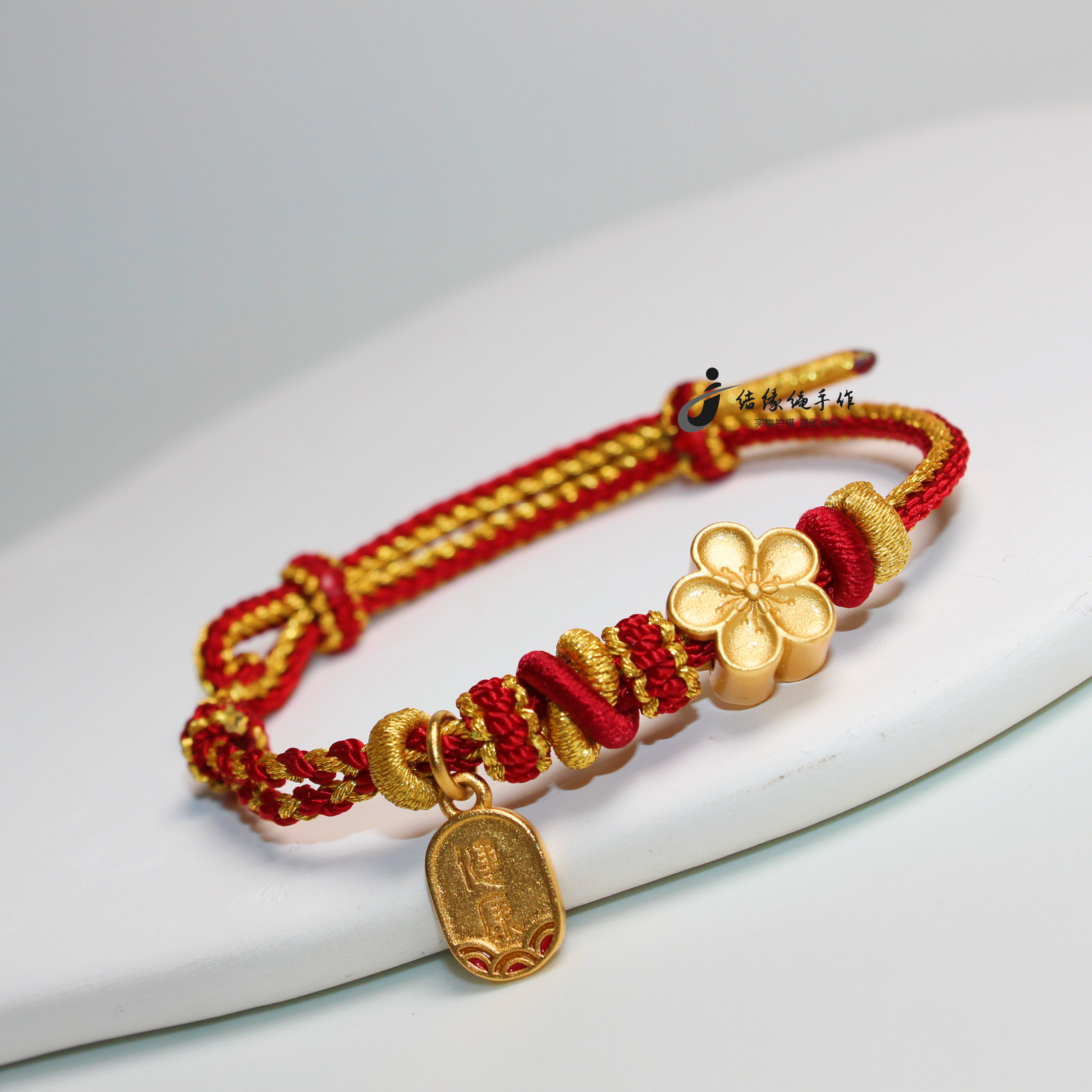📚 手工编织手链大乘金刚结红手绳可直接穿通孔黄金饰品男女亲子情侣