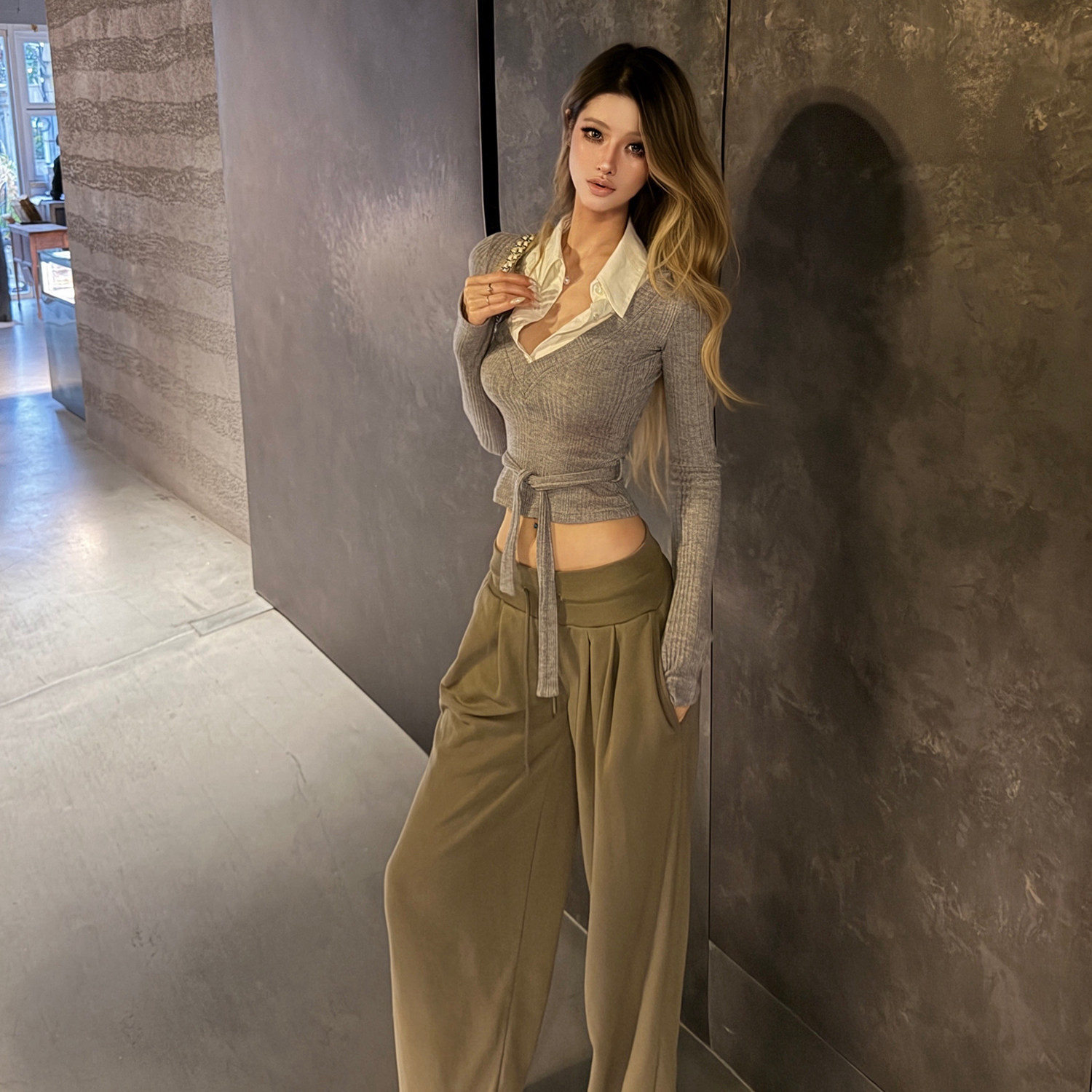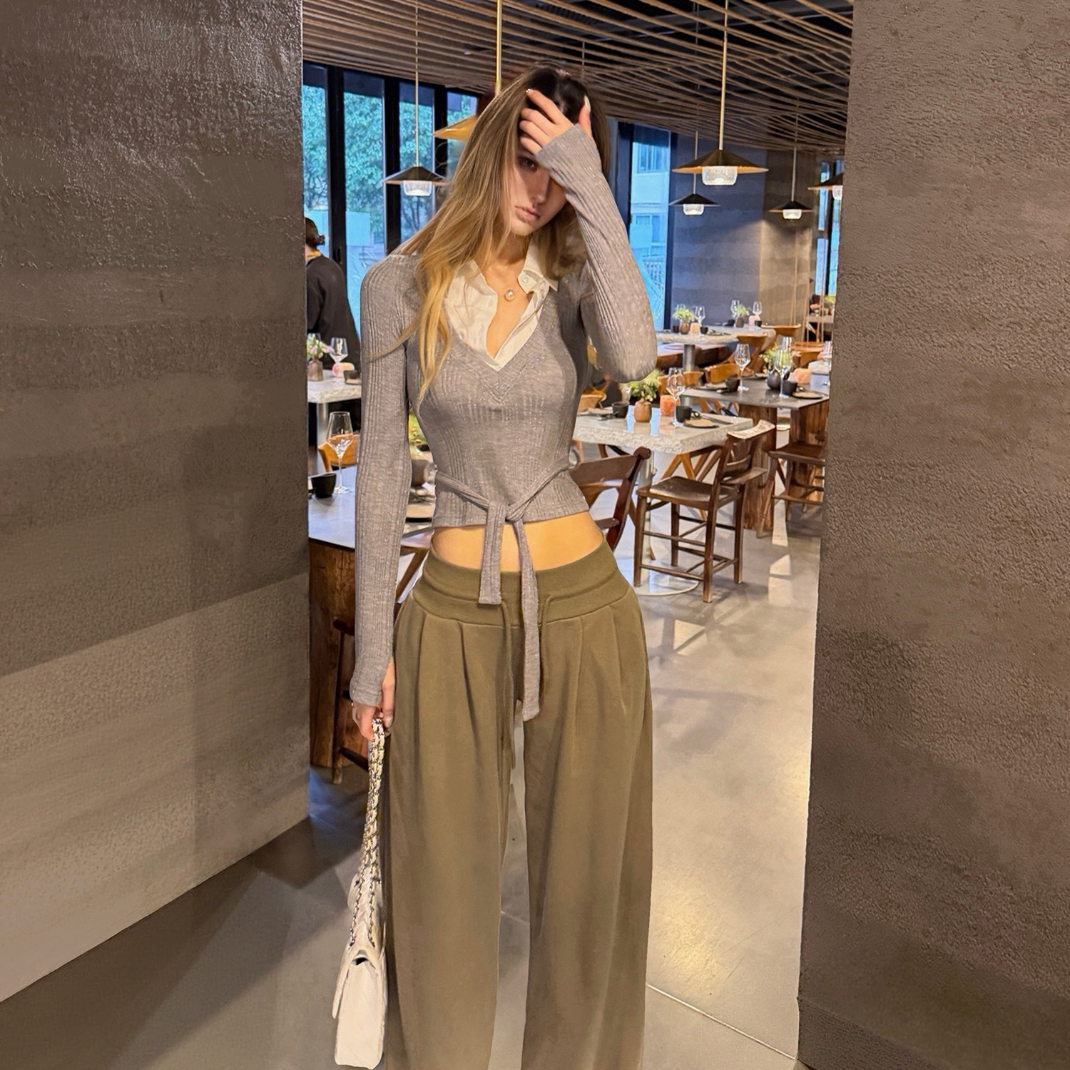 📚 PrettyDragon低腰收腰超显瘦垂感百搭阔腿抽绳卫裤拖地休闲裤女春