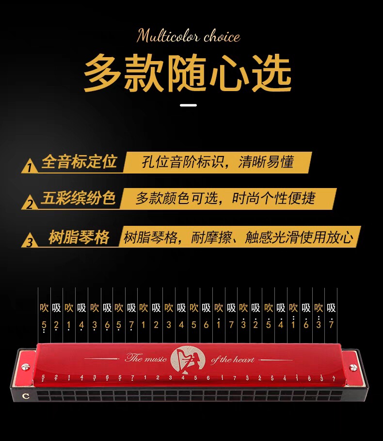 📚 奇美24孔复音口琴C调重音学生儿童成人初学者演奏乐器学校口风琴