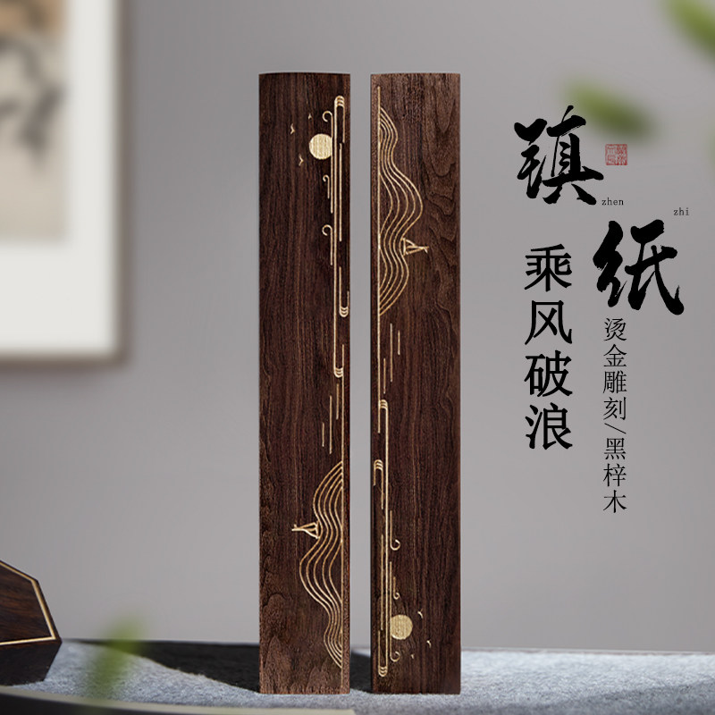 📚 黑梓木镇纸书法专用实木镇尺压书神器一对镇尺压纸压尺国风文房四宝镇尺原木毛笔字压条镇尺摆件创意高颜值