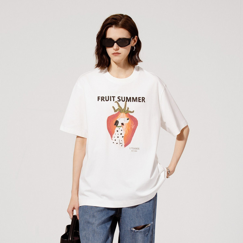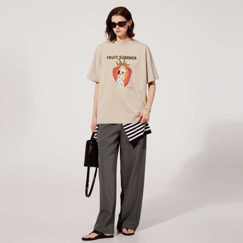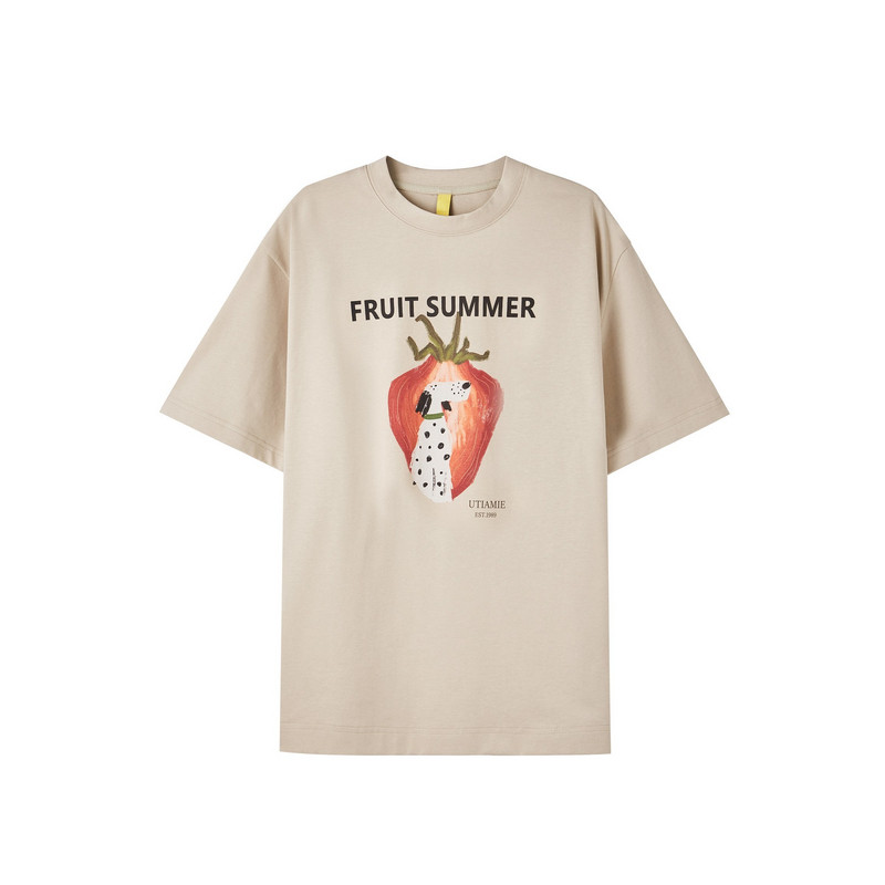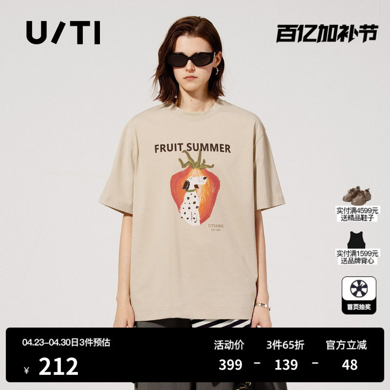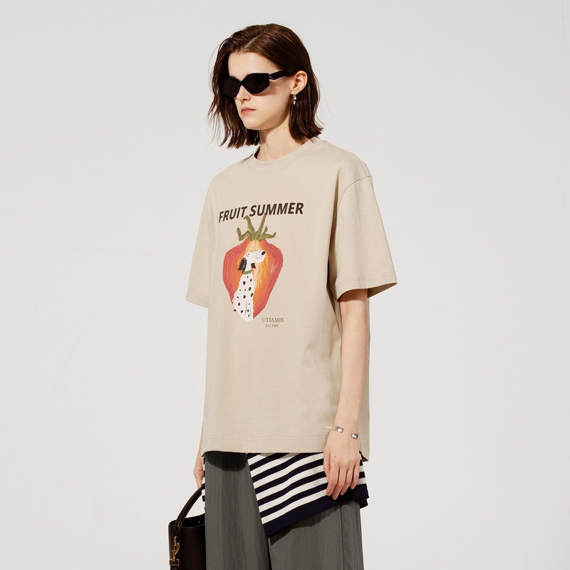📚 U/TI米咖色动物印花T恤女装宽松型轻薄款短袖上衣尤缇2025夏季新