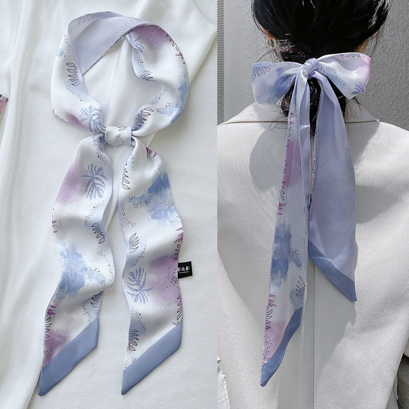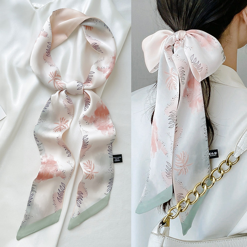 📚 粉色加长条小丝巾女网红ins扎头编发带绑包丝带飘带脖子装饰领带