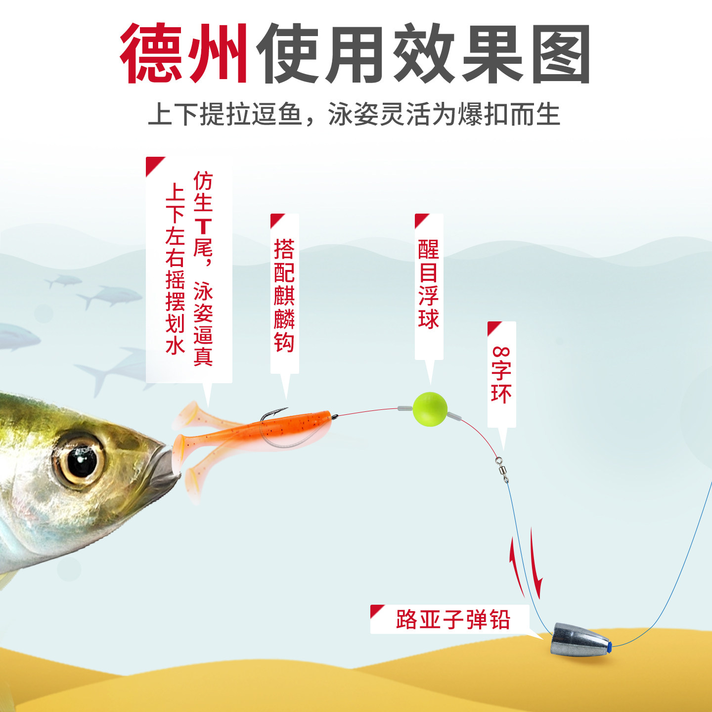 📚 路亚德州钓组反底倒钓线组防挂底鲈鱼钩免绑好8003钩远投子弹铅坠