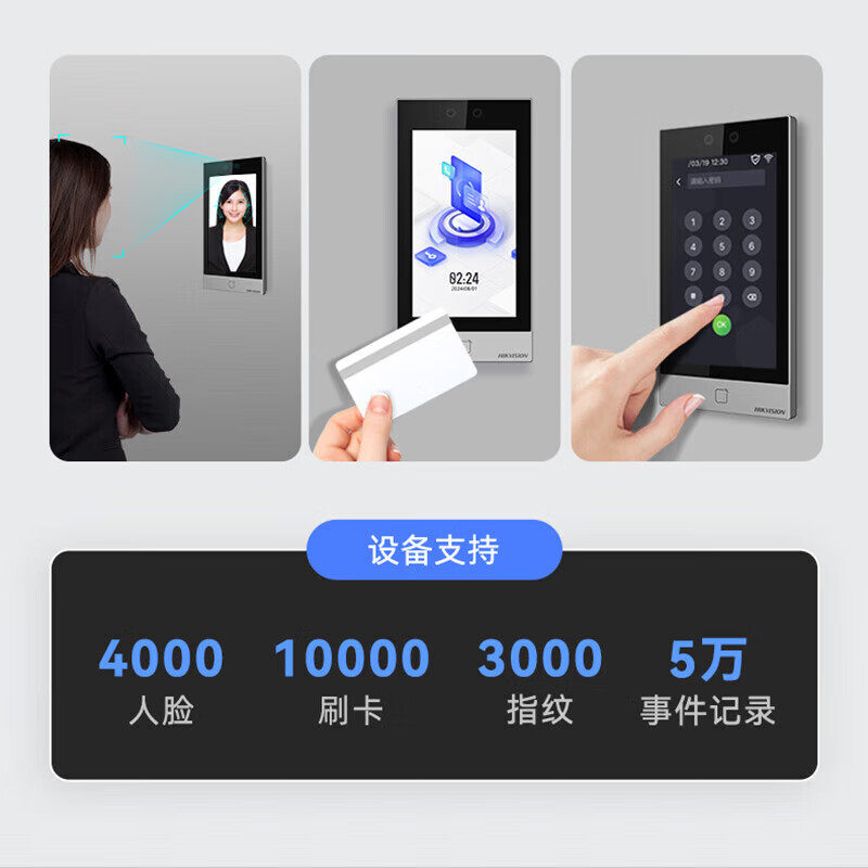 📚 海康威视D16 7寸触屏人脸识别门禁考勤一体机指纹密码刷卡考勤