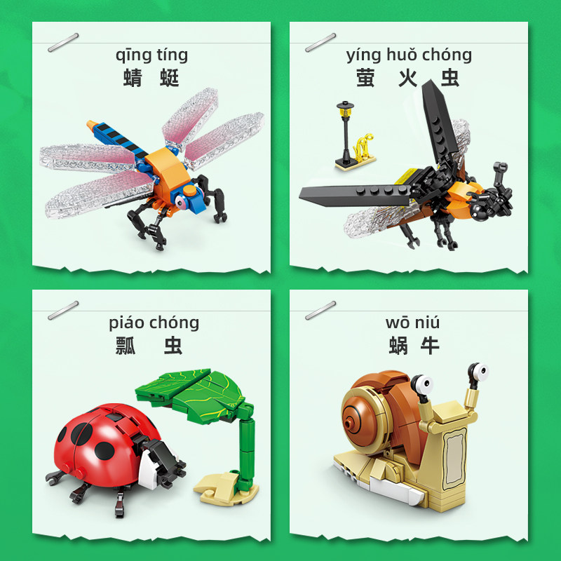 📚 开智积木昆虫家族玩具儿童益智力拼装小颗粒动物男孩拼图螳螂礼物