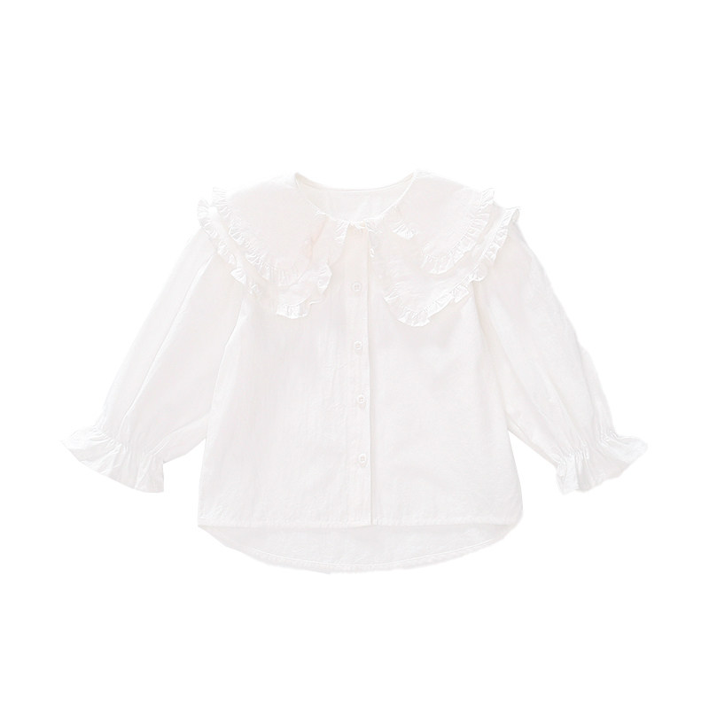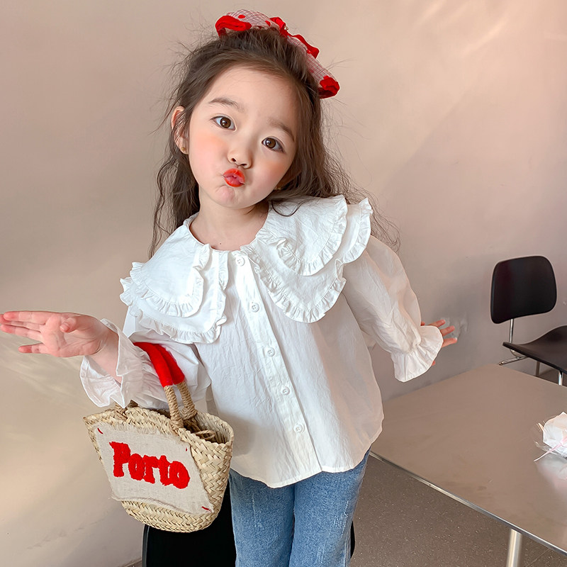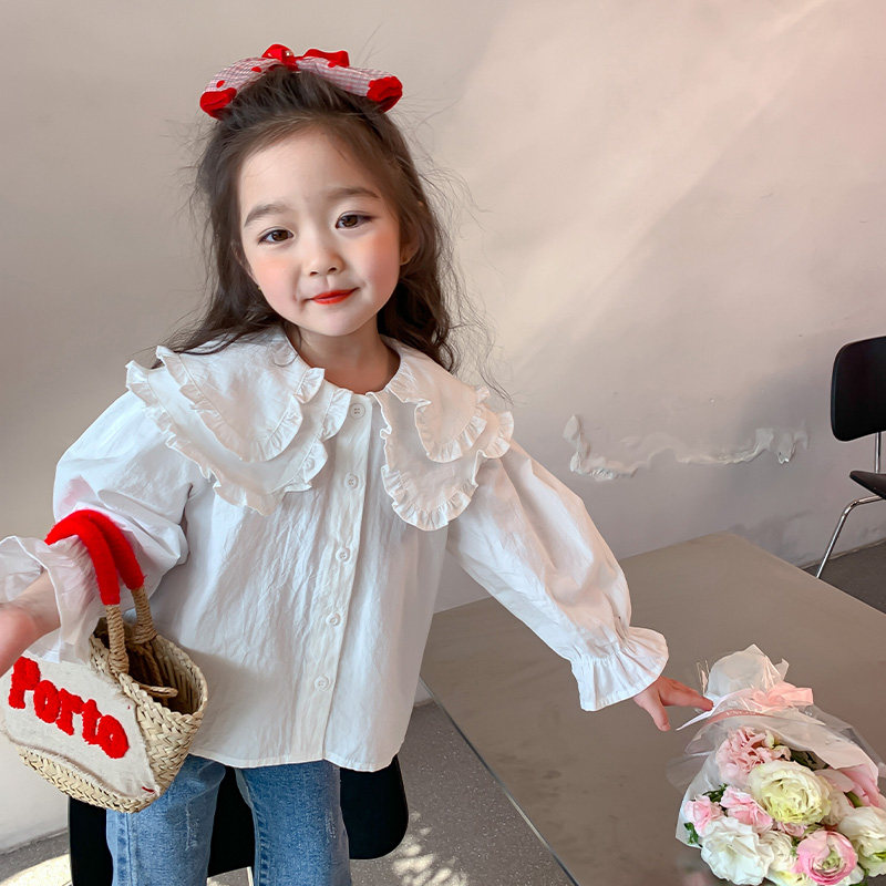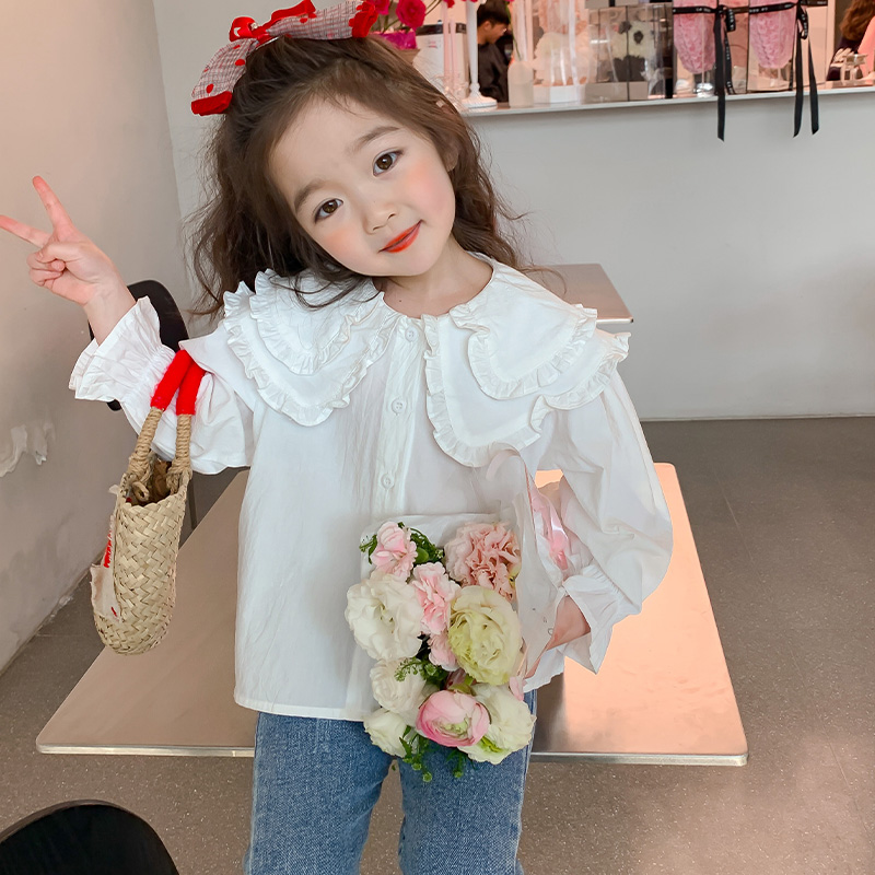📚 儿童娃娃领衬衫纯色春秋女小童白色衬衣秋装女童上衣简约韩版洋气
