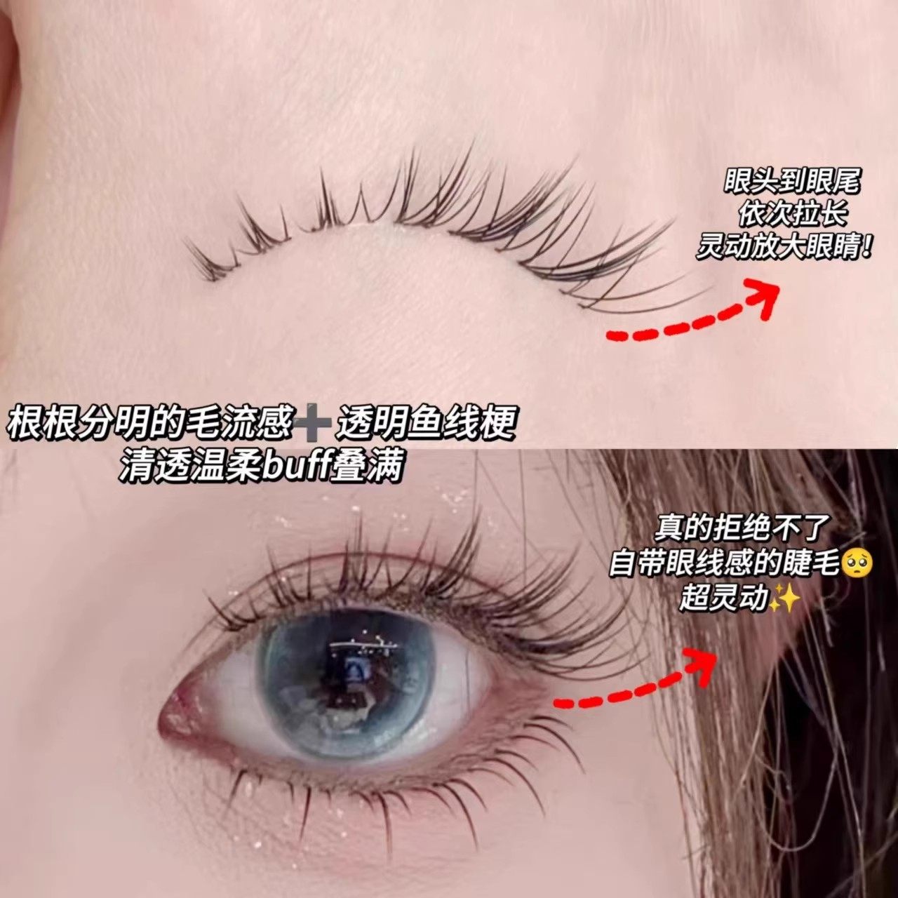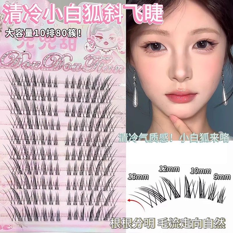 📚 为短圆眼而量身定做!清冷小白狐自然浓密整条分段假睫毛狐狸纯欲
