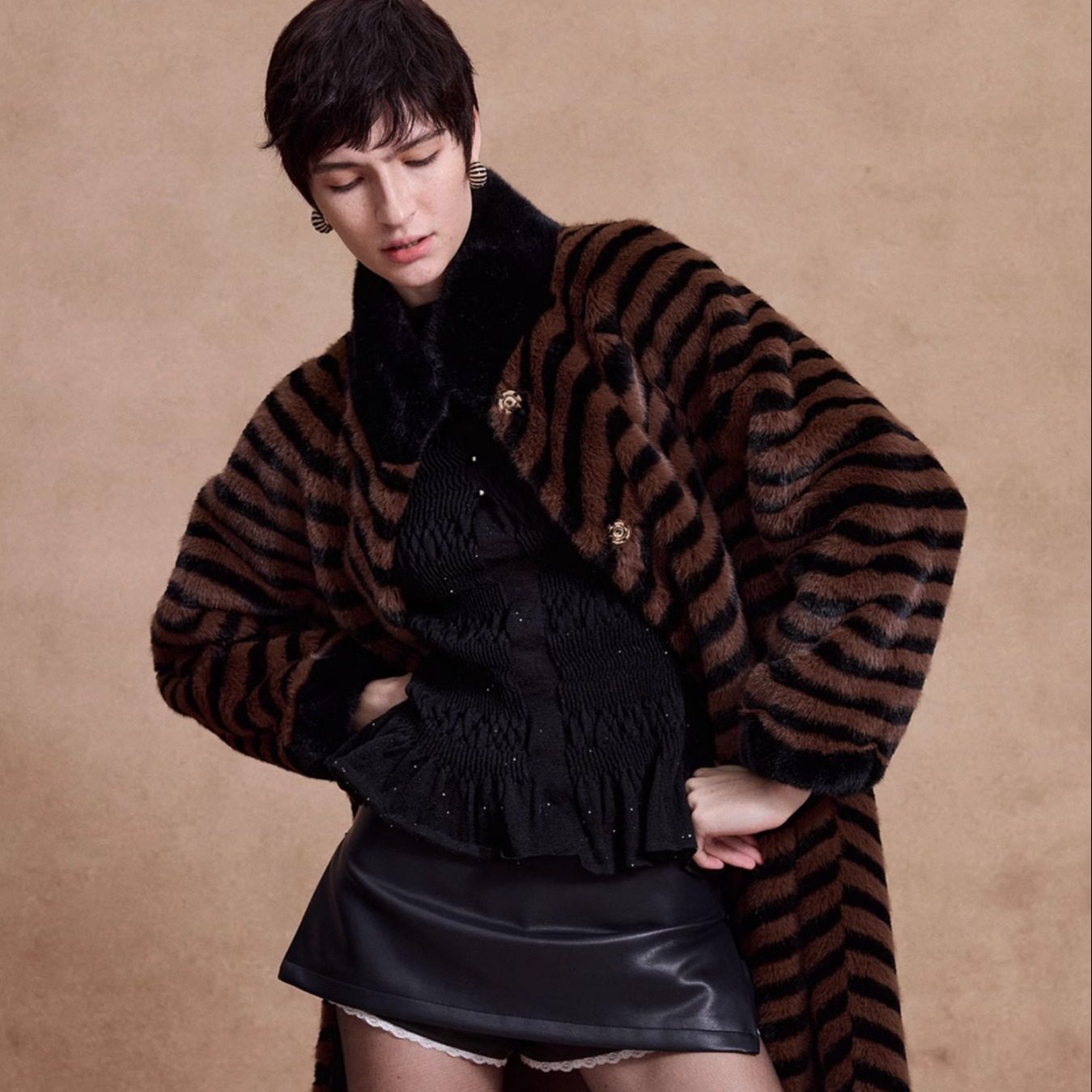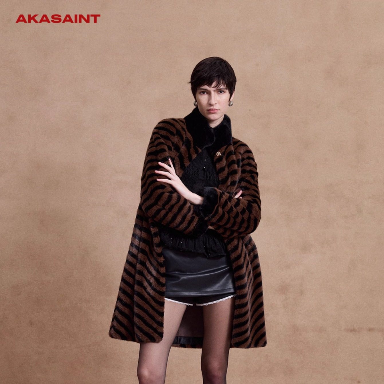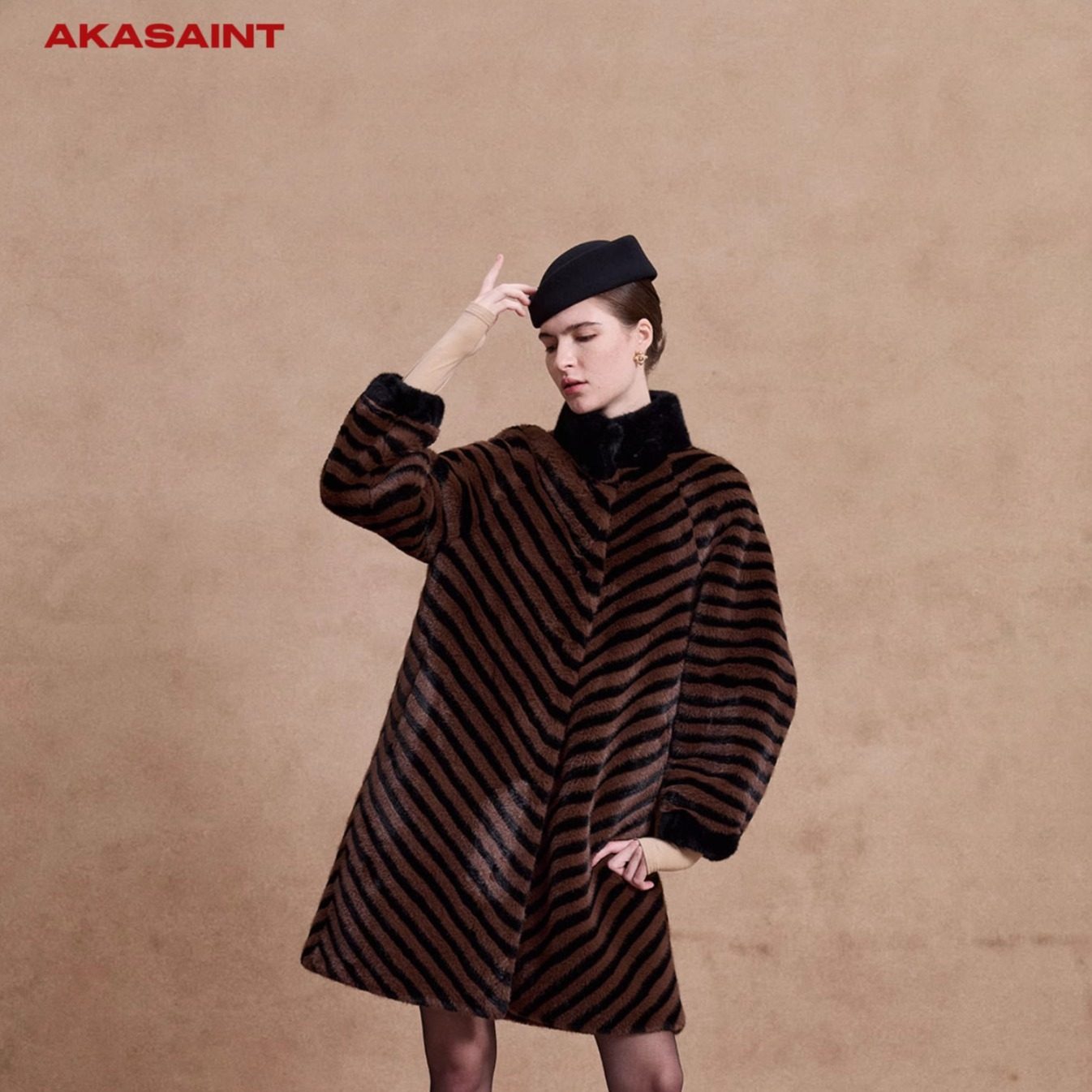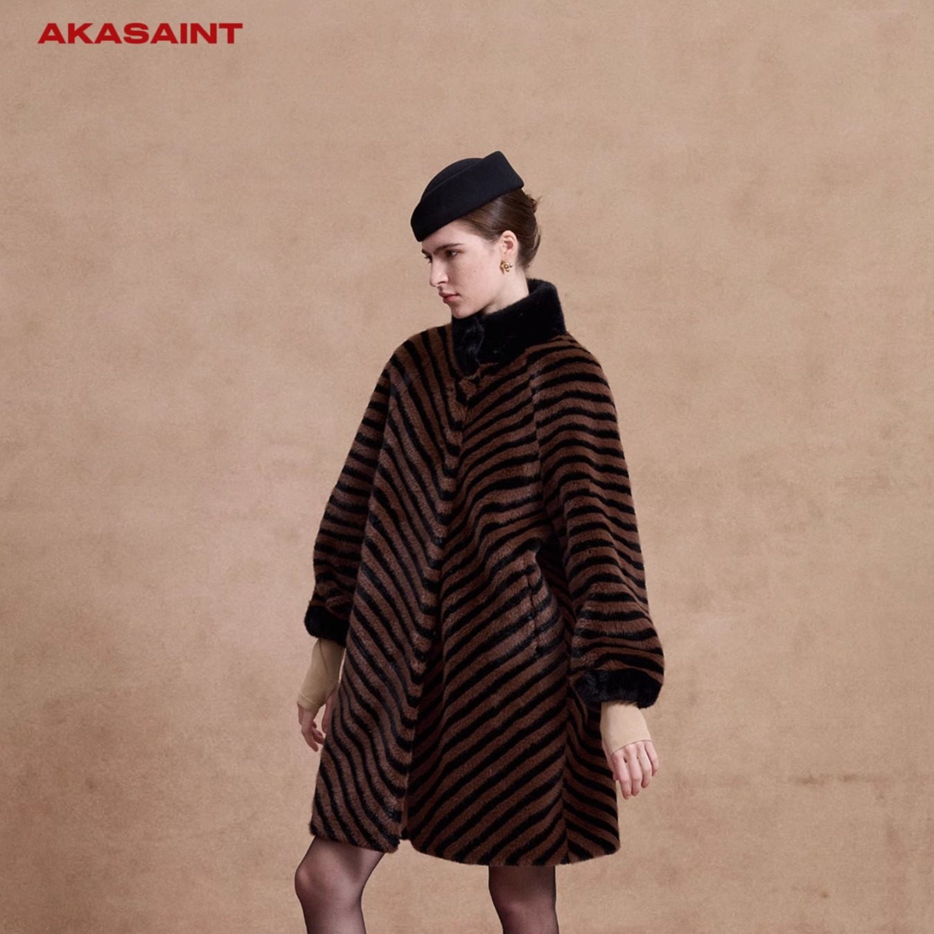 📚 AKASAINT"Newly rich"秋冬新品慵懒复古斜纹水貂毛新贵风环保皮草