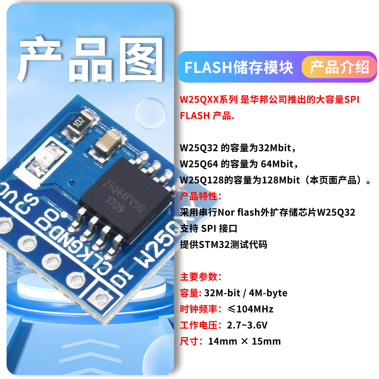 📚 W25Q32/64/128 大容量 FLASH储存模块 SPI接口 BV FV STM32代码