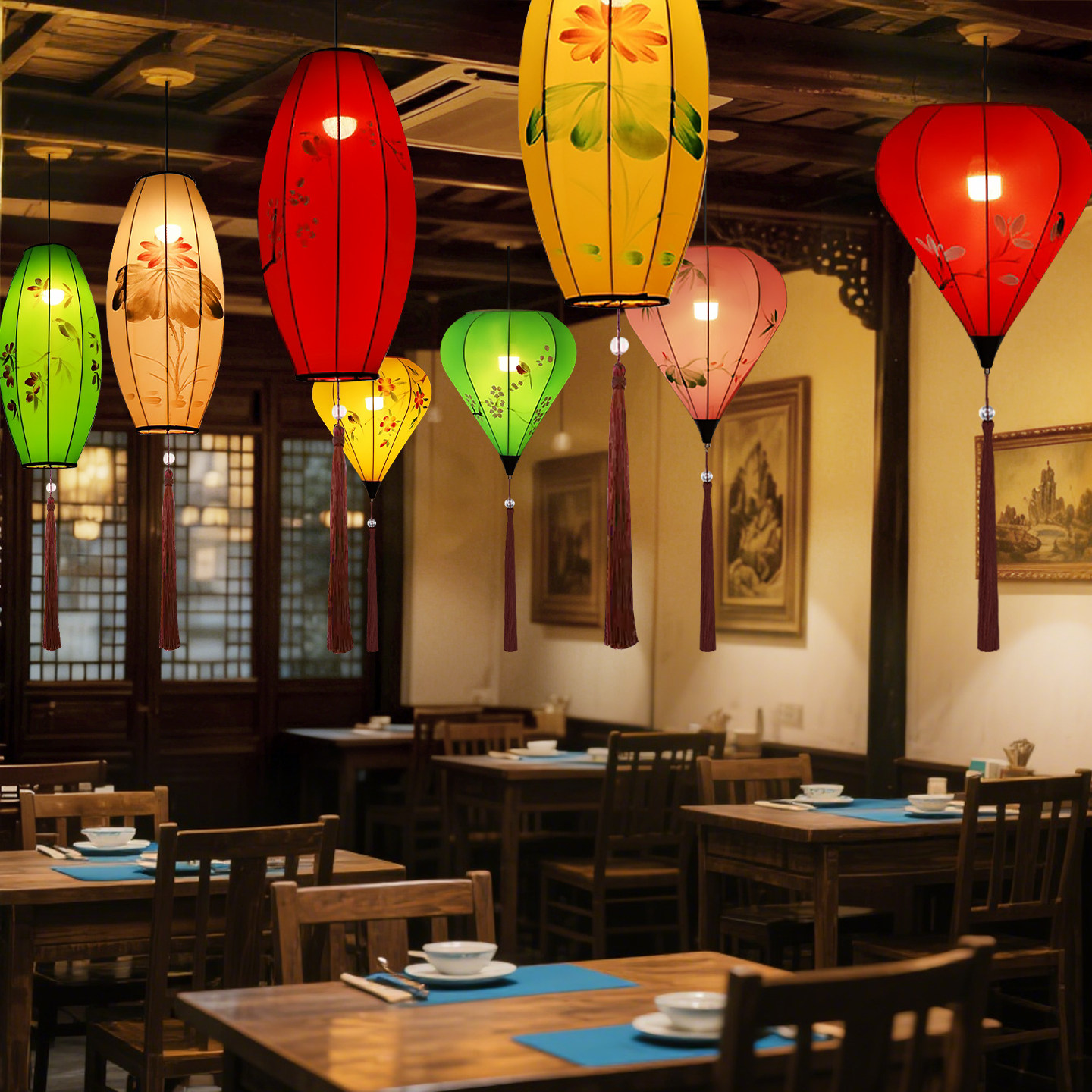 📚 中式异型灯笼布艺个性复古国风吊灯饭店餐厅仿古创意宫灯街道灯笼