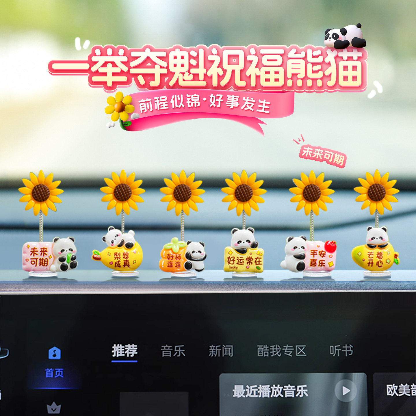 📚 新款一举夺魁向日葵车载摆件可爱熊猫摇头汽车中控台后视镜装饰品