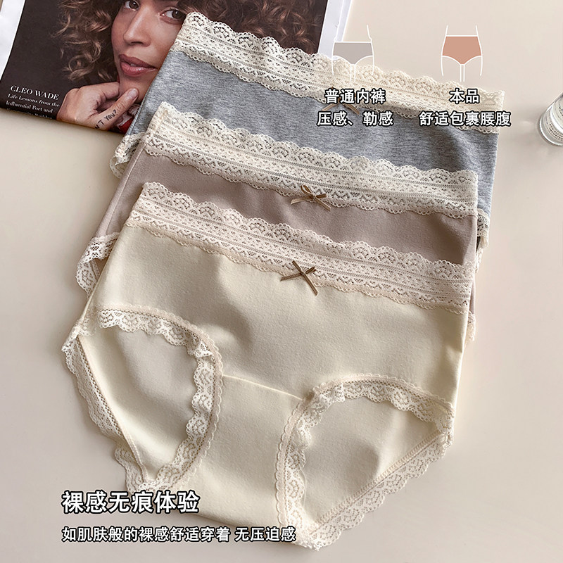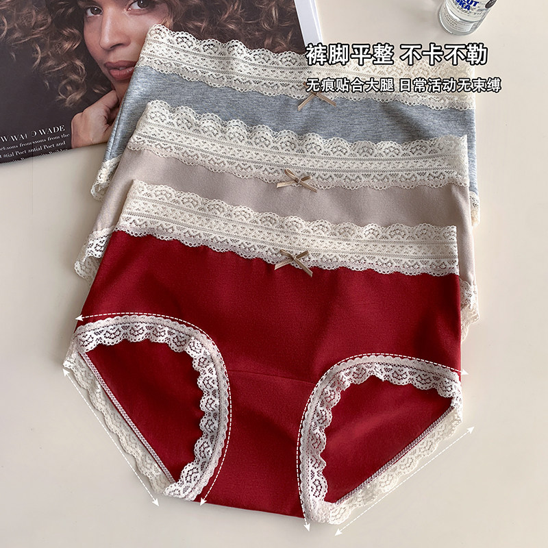 📚 纯棉蕾丝内裤女士舒适亲肤全棉透气性感中腰7A级抑菌裆三角裤短裤