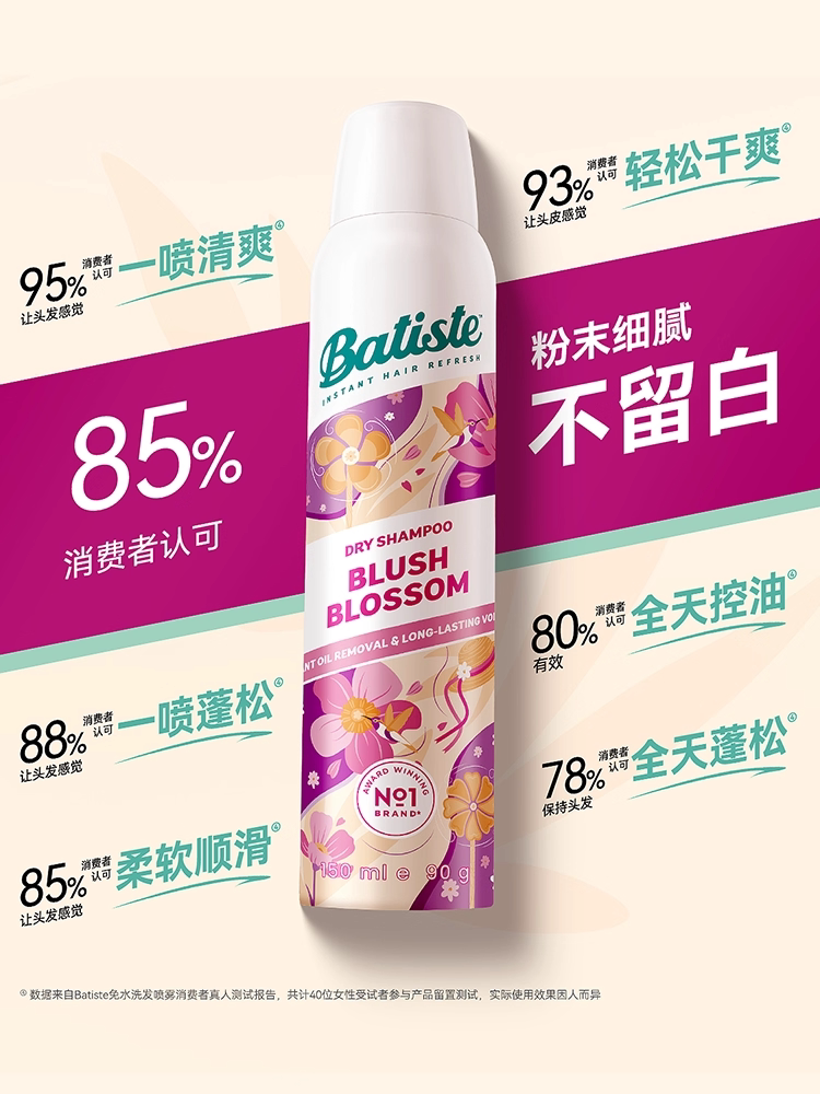 📚 【全新升级】Batiste碧缇丝免水洗头干洗发喷雾不留白神器蓬松
