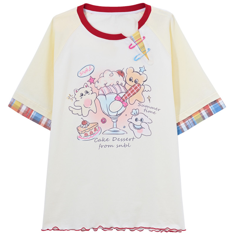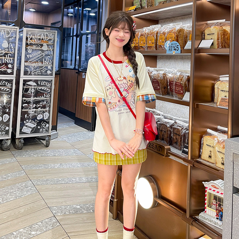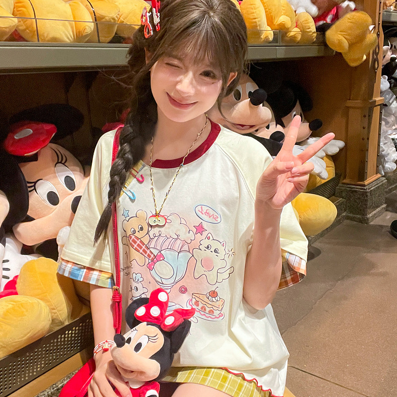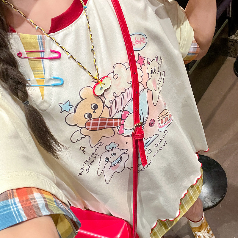 📚 森女部落多巴胺撞色短袖T恤女宽松童趣印花减龄设计感上衣夏新品