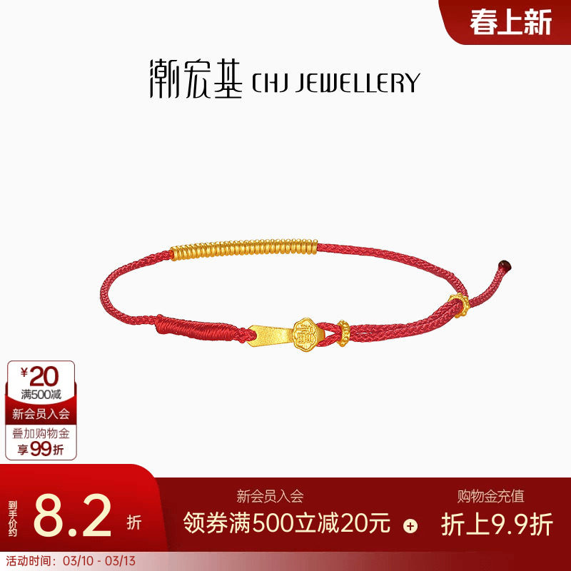 📚 潮宏基好事发生有福足金手绳黄金岁岁金手链串珠如意礼物宝宝计价