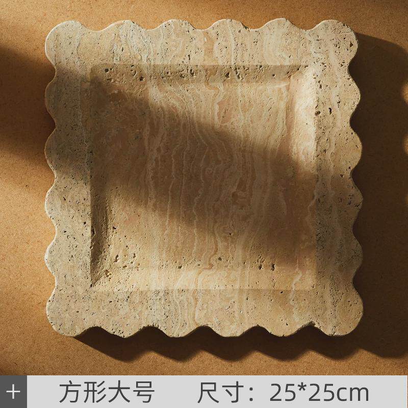 📚 侘寂置物然洞石托盘酒店样板房风天盘大理石异型托盘家居装饰摆件