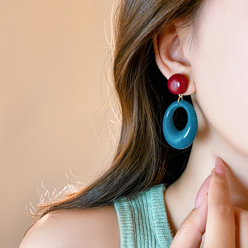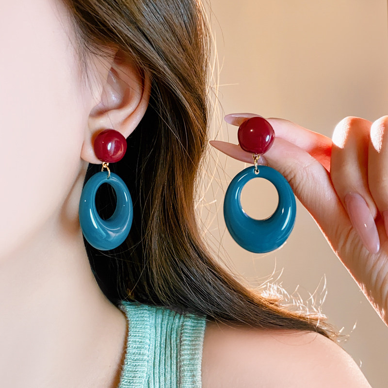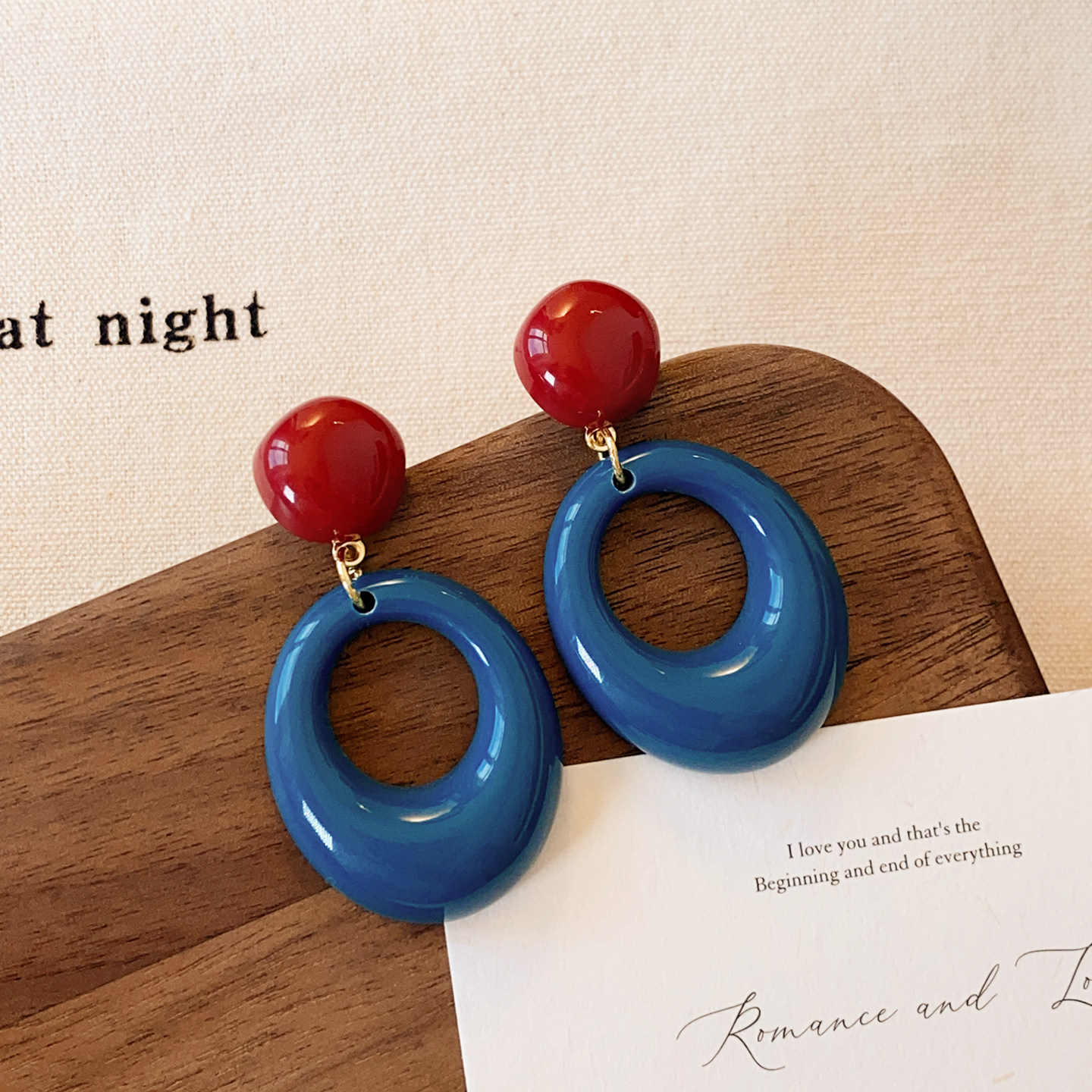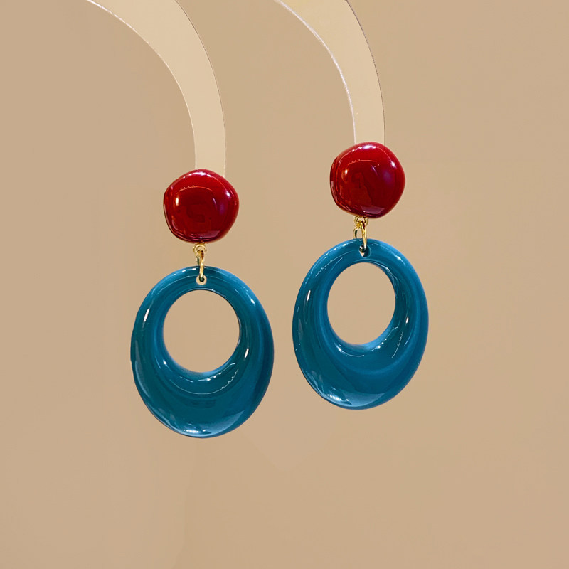 📚 红蓝色大耳环女2026新款多巴胺耳钉高级感轻奢彩色度假风耳饰夏季