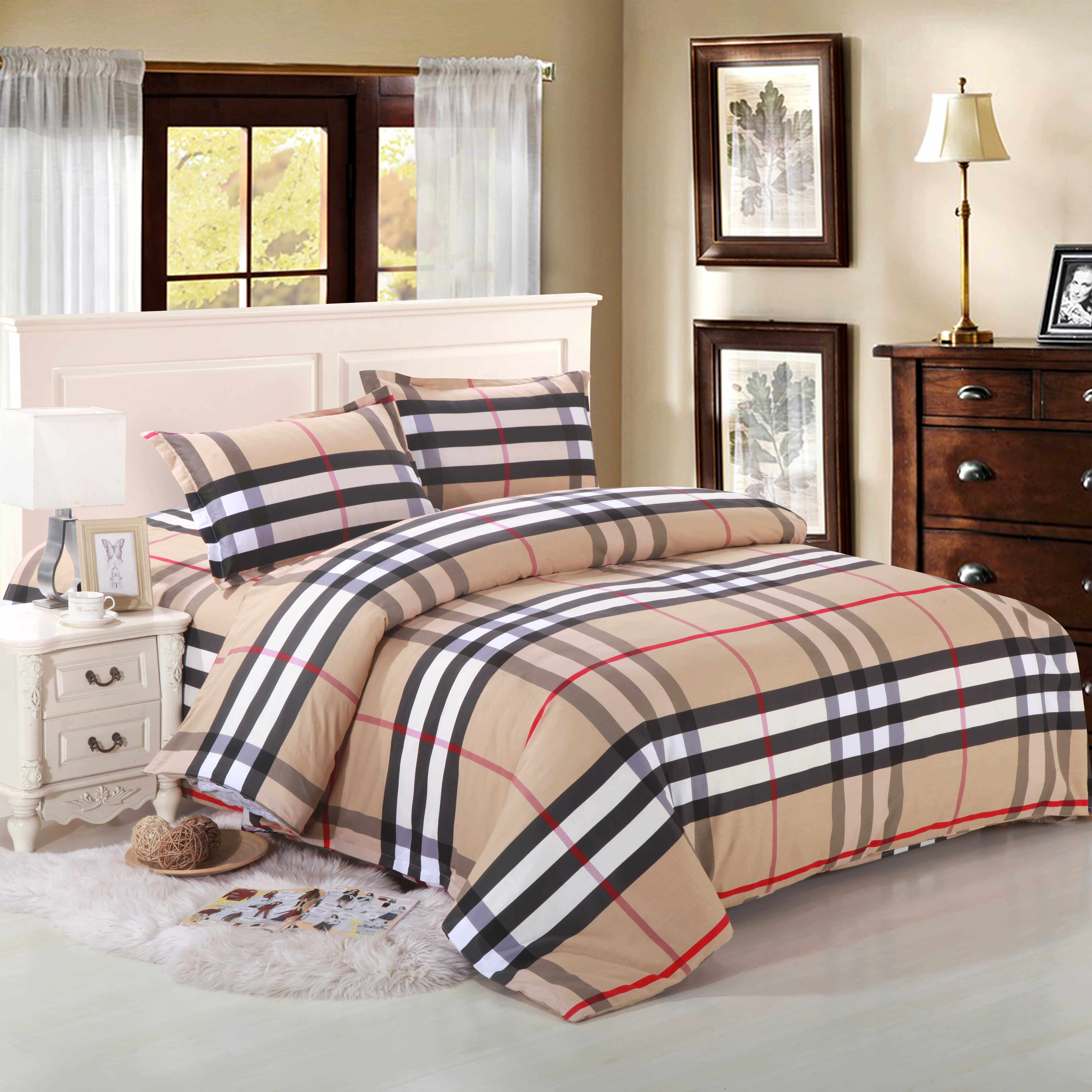 📚 全棉四件套加厚无拼接件套1.8床被罩2米双人床上用品格子被套居家